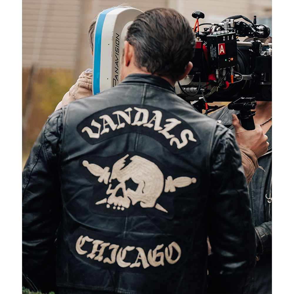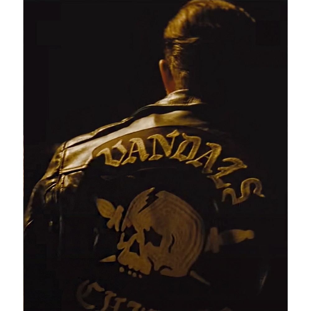 The collar of the jacket is of lapel style while the zipper closure of the Tom Hardy The Bikeriders leather jacket is symmetrical and gives a modern touch to the heritage style of the jacket. The straps on the shoulders and zippered cuffs on the long sleeves further promote its design of strength. On the back it states Vandals Chicago which is a direct reference to the famous movie.