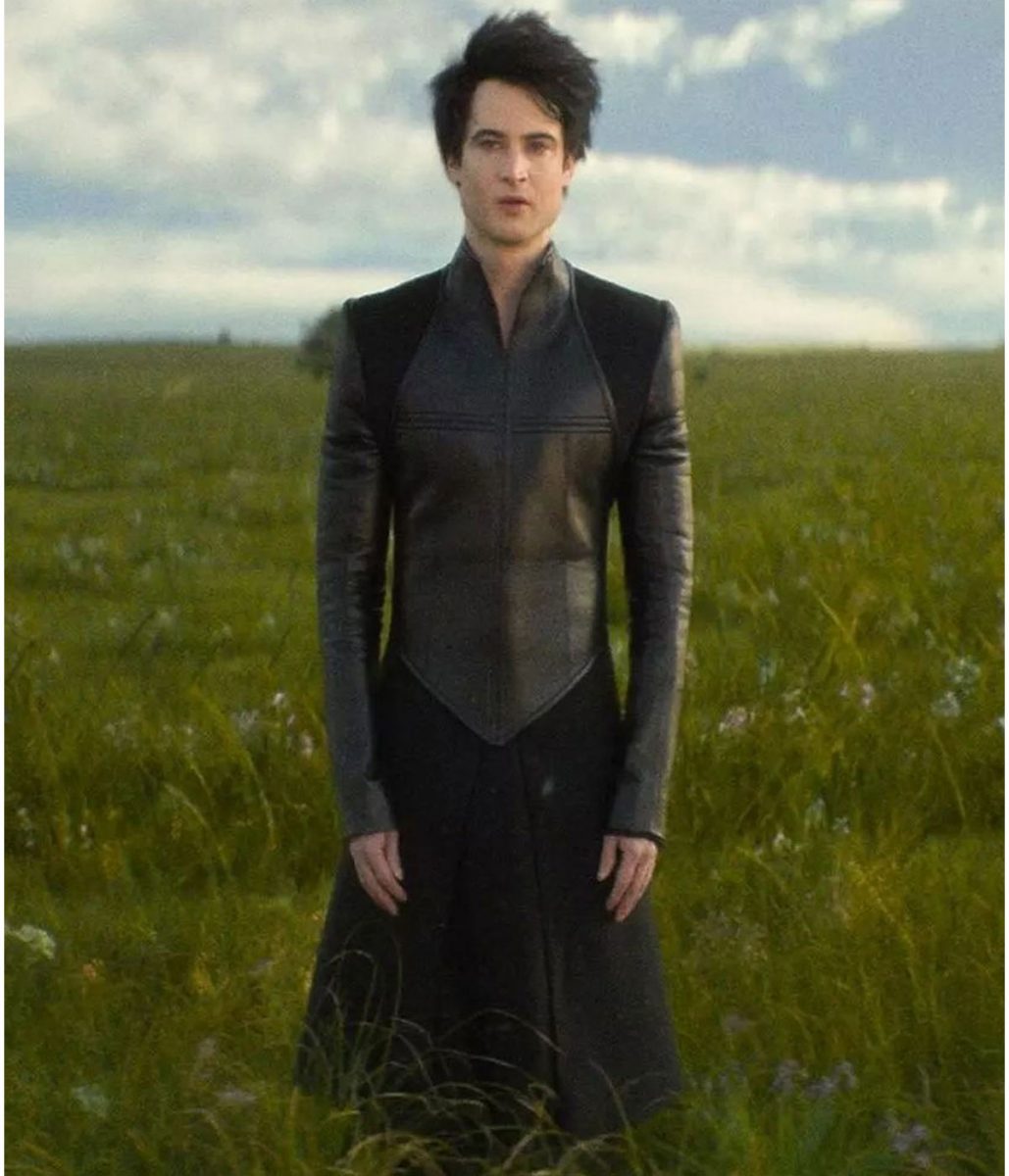 The Sandman Dream jacket is made from high quality cotton and genuine leather. The jacket is available in a mesmerizing black color, which gives it an innovative and striking look. The jacket has stand-up style collar. The jacket has branded YKK zipper front closure. A soft viscose inner lining of the jacket keeps you warm and relaxed. The sleeves of the Tom Sturridge the Sandman Leather jacket are long with open hem cuffs. The jacket has two outer and two inside pockets. The fine quality stitching of Sandman Dream jacket makes it durable and desirable to wear. The jacket is an ideal choice to wear in parties.
