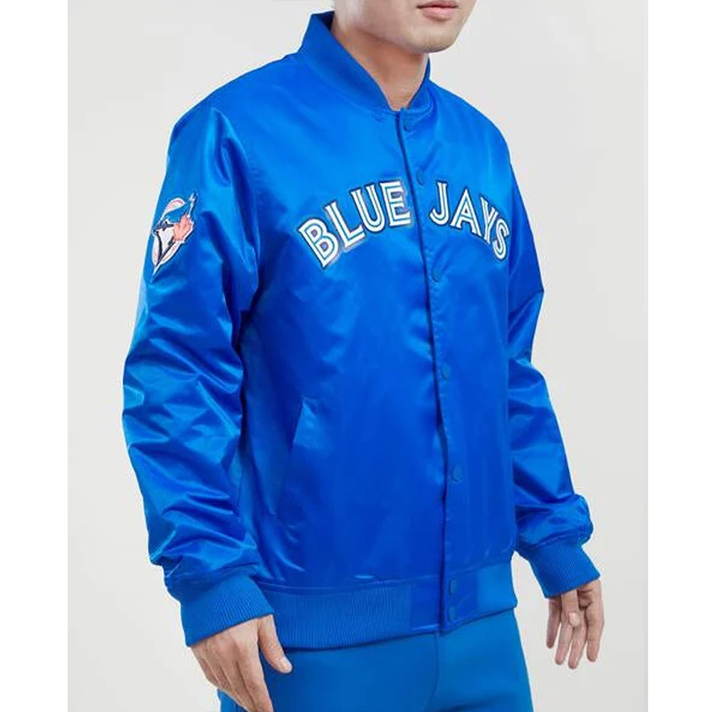 Take your wardrobe to the next level with the best accessory, the Toronto Blue Jays Big Logo Jacket, featuring the Toronto Blue Jays logo on the chest and back. Being made from a satin material that is very classy, this jacket is appropriate for any classy occasion or as formal wear. If you are going to a game, going out, or just want a fashion statement, this jacket hits the nail on the head. Inside it is covered with a smooth viscose lining and provides maximum comfort and breathability of the shoe. The royal blue color is also extremely vibrant yet classic and is guaranteed to leave an impressive impression. This jacket has a full snap closure which enables it to fit perfectly while at the same time having a throwback appeal.