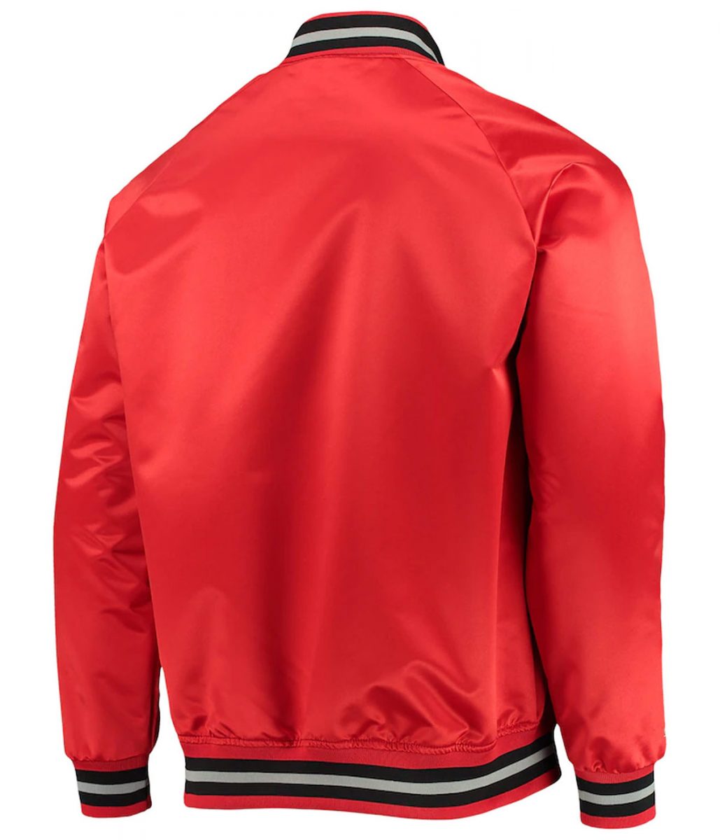 The Toronto Raptors Red jacket fabricated of high-quality satin fabric. The jacket is available in red color to give an attractive look to jacket. The collar of the jacket is a rib-knitted style. It has a classic snap tab buttoned front closure with a rib-knitted hemline. A soft viscose inner lining of the jacket keeps you calm and peaceful. The sleeves of the Toronto Raptors Hardwood Classics Red satin full-snap Raglan jacket are long ends with rib-knitted cuffs. It has a team name written on the chest and back giving the player an isolated identity. The jacket has two side waist pockets for keeping stuff. The fine quality stitching of the Toronto Raptors Red jacket makes it comfortable to wear. The jacket has a classical sport style.