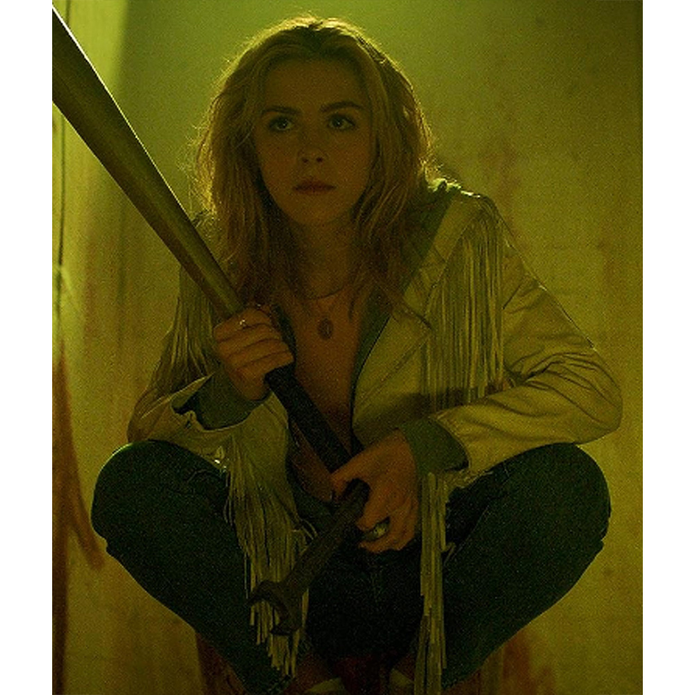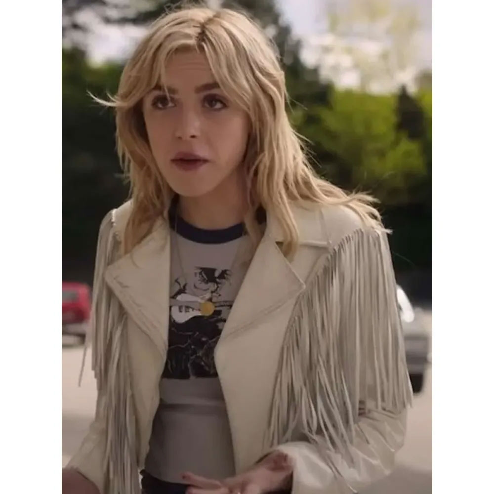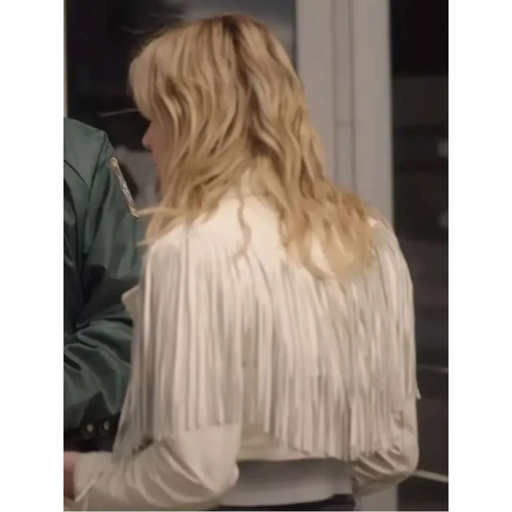 Totally Killer Jamie Hughes White Fringed Jacket