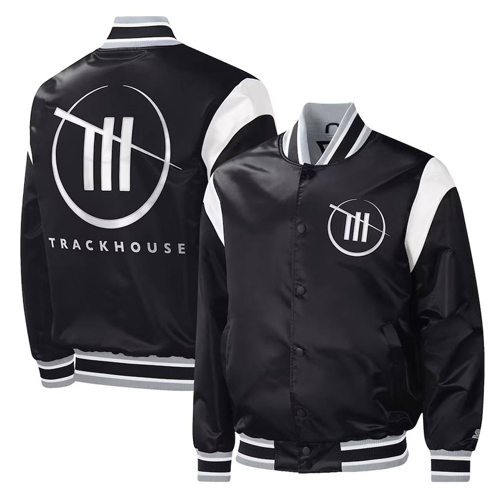 Starter Black Trackhouse Racing Force Play Full-Snap Satin Jacket