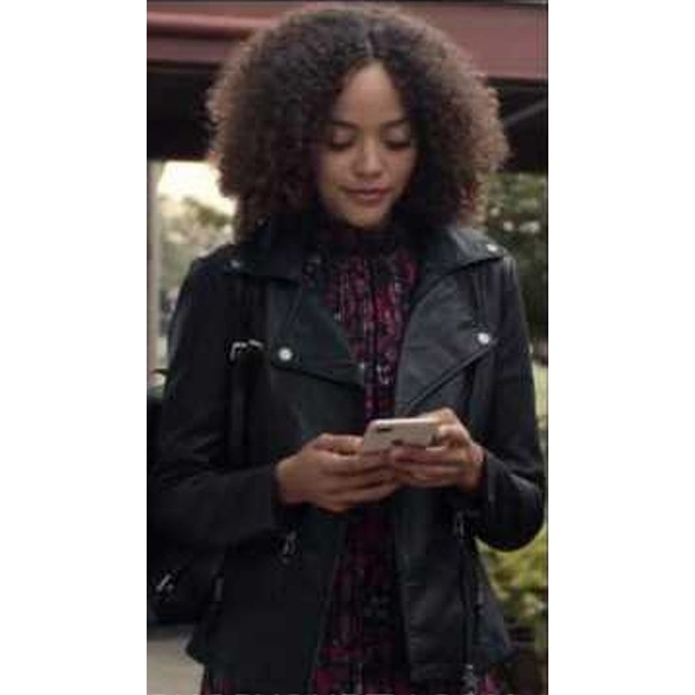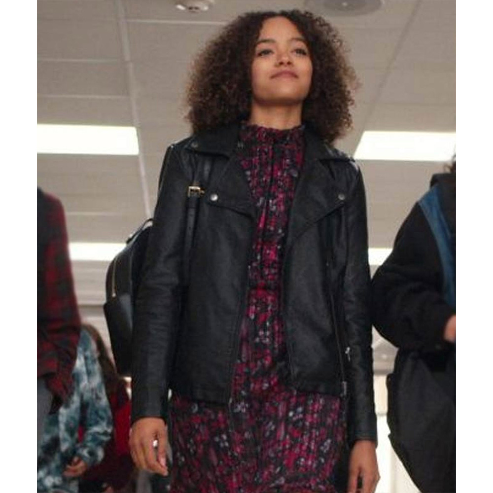 Experience the allure of the Tabitha Foster Leather jacket, meticulously crafted from premium quality genuine leather. Its mesmerizing black color exudes elegance and innovation, creating a enchanted and memorable look. This Trinkets Season 2 Quintessa Swindell Leather jacket features a sleek lapel style collar and a branded YKK Zipper front closure for a touch of sophistication and convenience. The soft viscose lining offers warmth and relaxation, while the long sleeves with open hem cuffs ensure a comfortable and refined fit. With two inner and two side pockets, this Tabitha Foster Leather jacket provides practicality and functionality. The fine quality stitching guarantees comfort and desirability, making it the ideal choice for party goers and style enthusiasts alike.