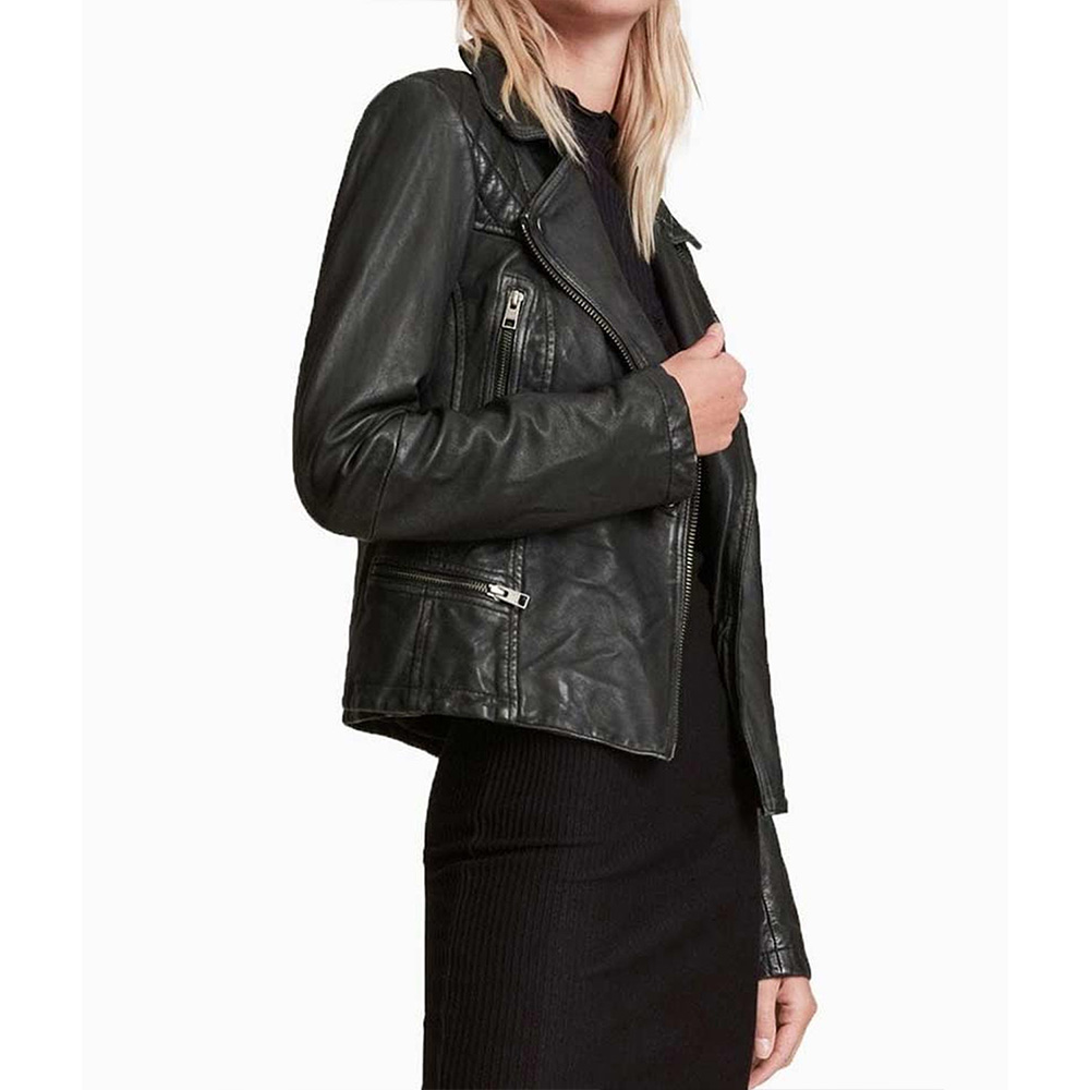 Embark on a journey into the unknown with the Violet Mazurski Leather Jacket, as seen on Karolina Wydra in True Blood Season 7. This jacket is more than just attire; it’s an enigmatic revelation. Crafted from exquisite genuine black leather, it exudes a sense of captivating allure. The lapel-style collar and branded YKK zipper front closure give this jacket an intriguing and irresistible look, perfect for those who crave the extraordinary. Its long sleeves with zipper cuffs add to its mystique. For practicality, this jacket features two side pockets, offering convenient storage for your secrets. The viscose lining ensures comfort throughout the day, while the fine quality stitching reflects the meticulous craftsmanship behind this extraordinary piece. Designed for women who seek to embrace the enigmatic and leave a lasting impression, the Violet Mazurski Leather Jacket is an essential addition to your collection.