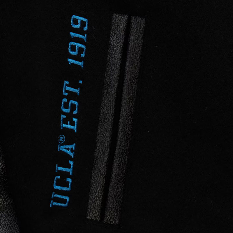 Output celebrates your allegiance to the team with Bold UCLA Bruins logos emblazoned on the chest and back. The “UCLA Bruins” lettering further accentuates the back further with it being a need to have for every supporter of the club. This UCLA Bruins Varsity Jacket is such an excellent stitching and has such an attention to detail, it’s that perfect combination of comfort and quality.