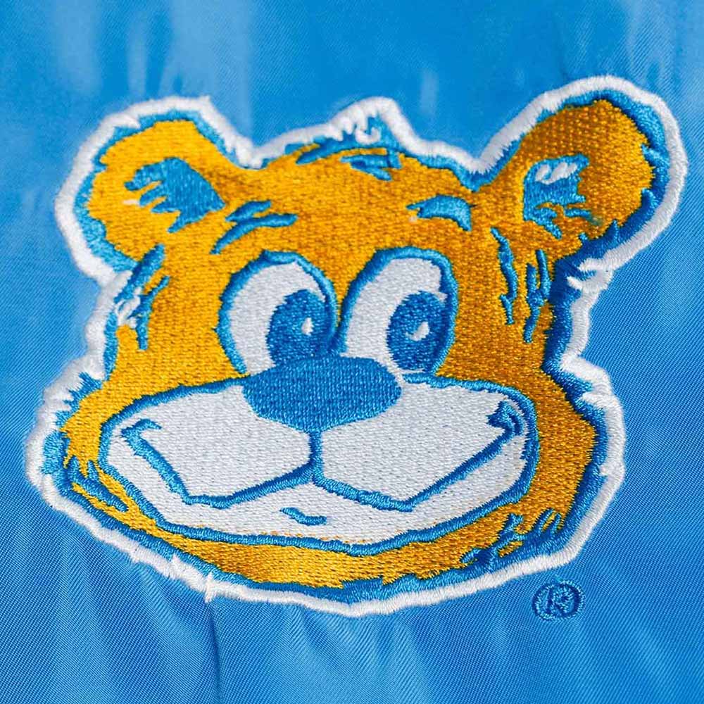 Light Blue Script UCLA Joe Bruin Full-Snap Satin Bomber Jacket