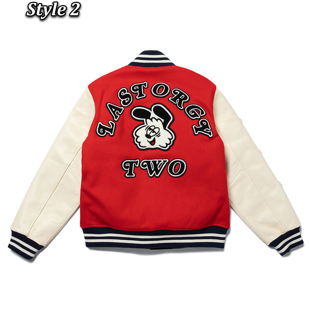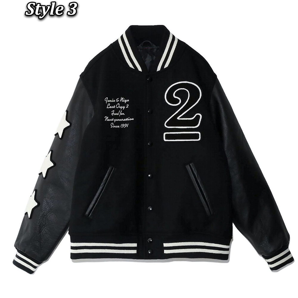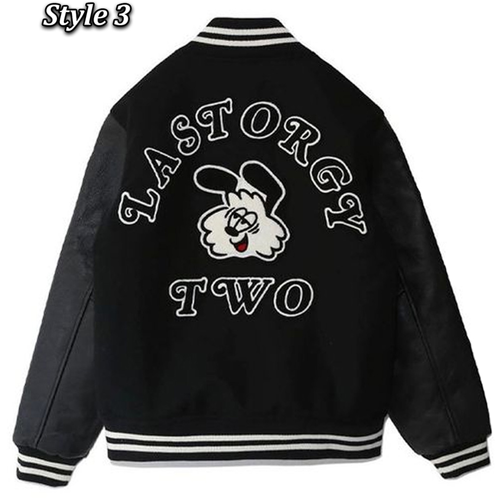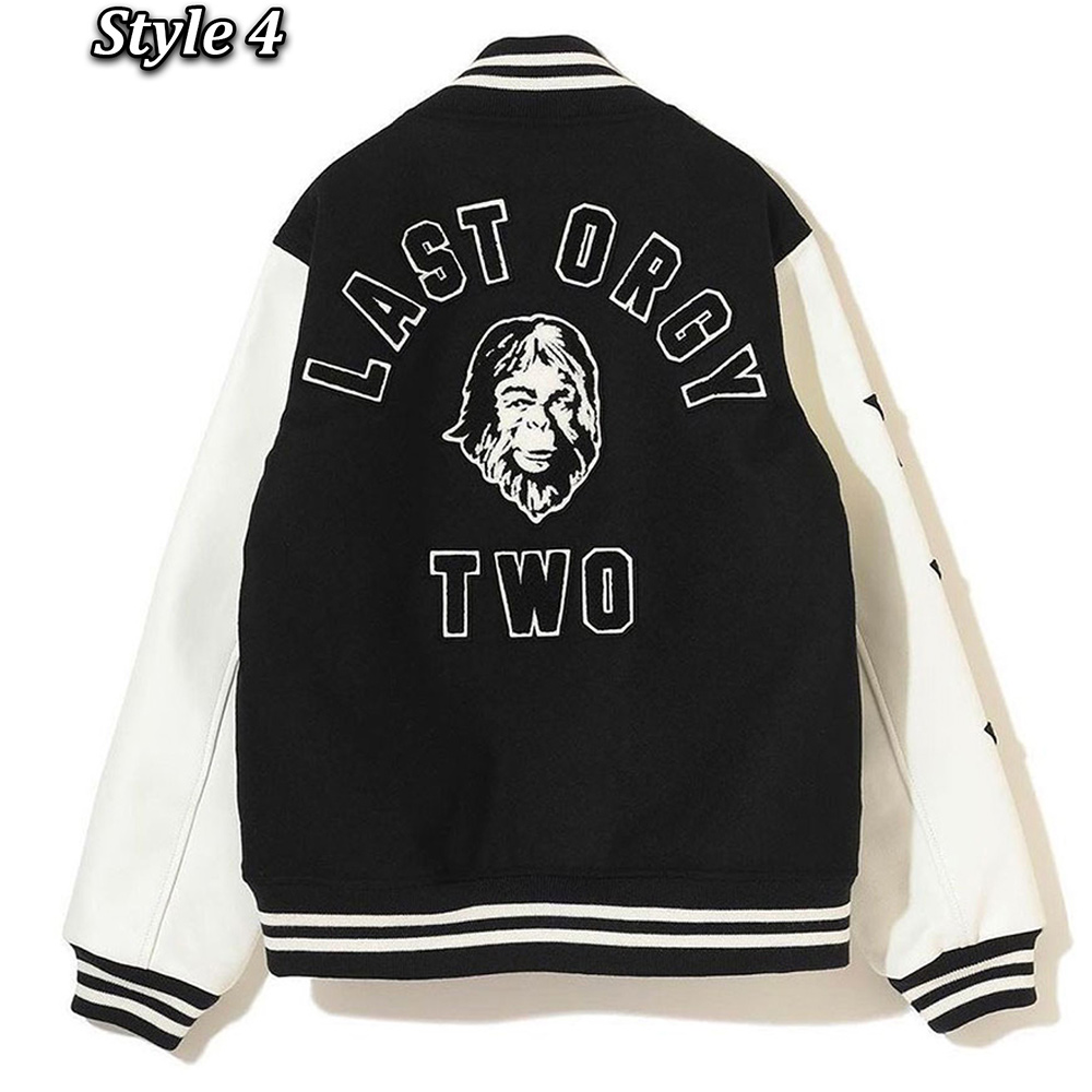 Introducing the Last Orgy 2 Varsity jacket High-quality wool body with genuine leather sleeves. The combination of Mesmerizing black and white color for an innovative and striking look. Rib-knitted collar adds a touch of style. Classic snap tab buttoned front closure for a timeless appeal. Stay warm and relaxed with the soft viscose inner lining. Full-length sleeves with fitting and rib-knitted cuffs for a sleek look. Two side waist pockets of Undercover Last Orgy 2 Varsity jacket is for convenience. Fine quality stitching ensures durability and comfort. Embrace this unique and catchy, yet leek and alluring piece that sets you apart from the crowd. Experience the perfect blend of Introducing the Last Orgy 2 Varsity jacket style and comfort, maintaining its length for an impeccable fit.