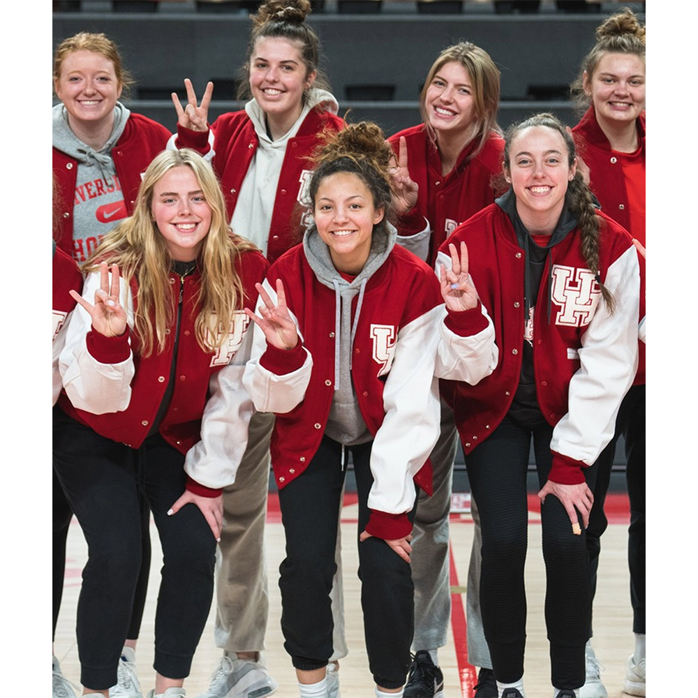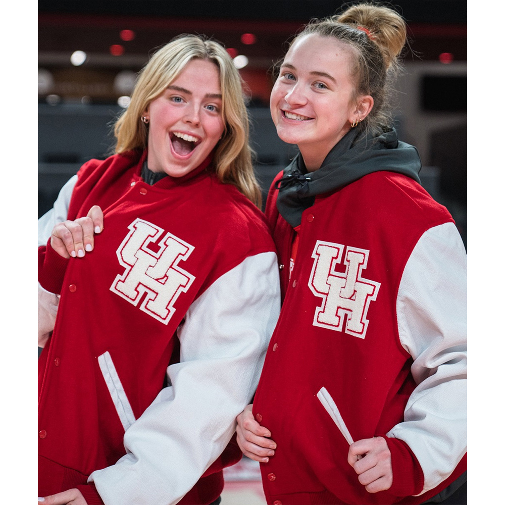 Elevate your collegiate style with our University of Houston Letterman Jacket in iconic White and Red. Crafted for comfort and adorned with school pride, it’s the ultimate statement piece for any UH fan. Embrace the tradition, celebrate your achievements, and showcase your Cougar spirit with this timeless and high-quality University of Houston varsity jacket. Whether you’re on campus or cheering from afar, stand out in style with this must-have University of Houston apparel. Go Cougars!
