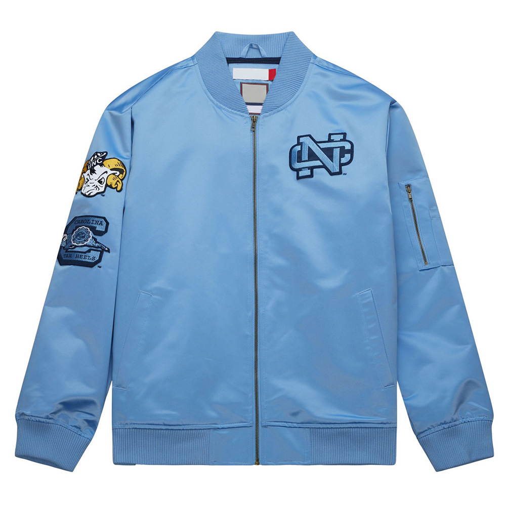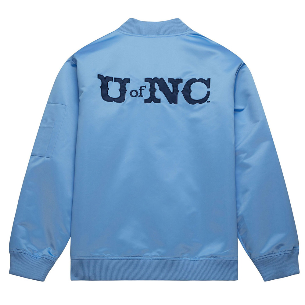 Light Blue Vintage Logo University of North Carolina Bomber Full-Zip Satin Jacket