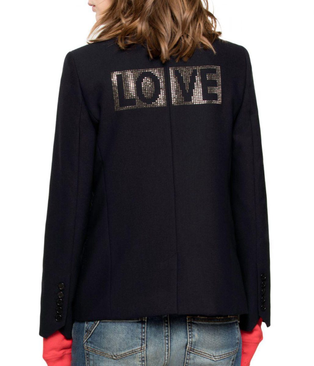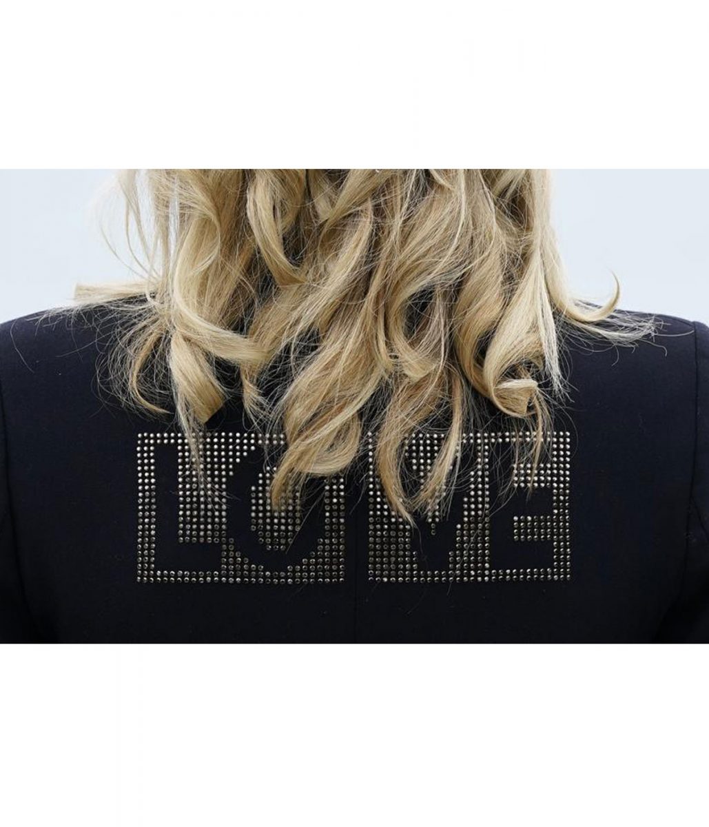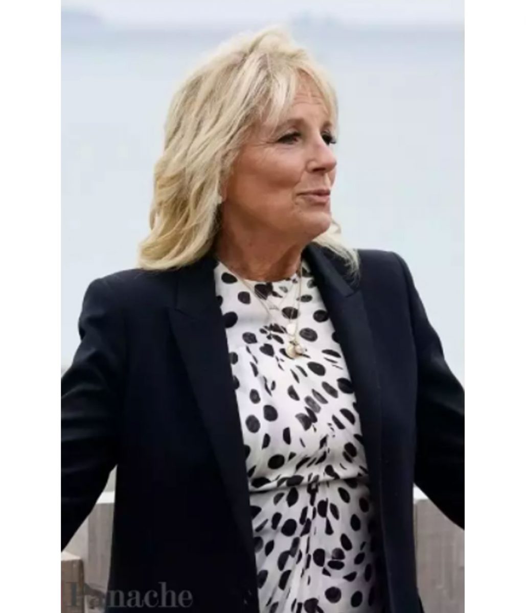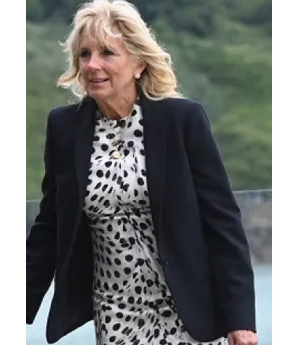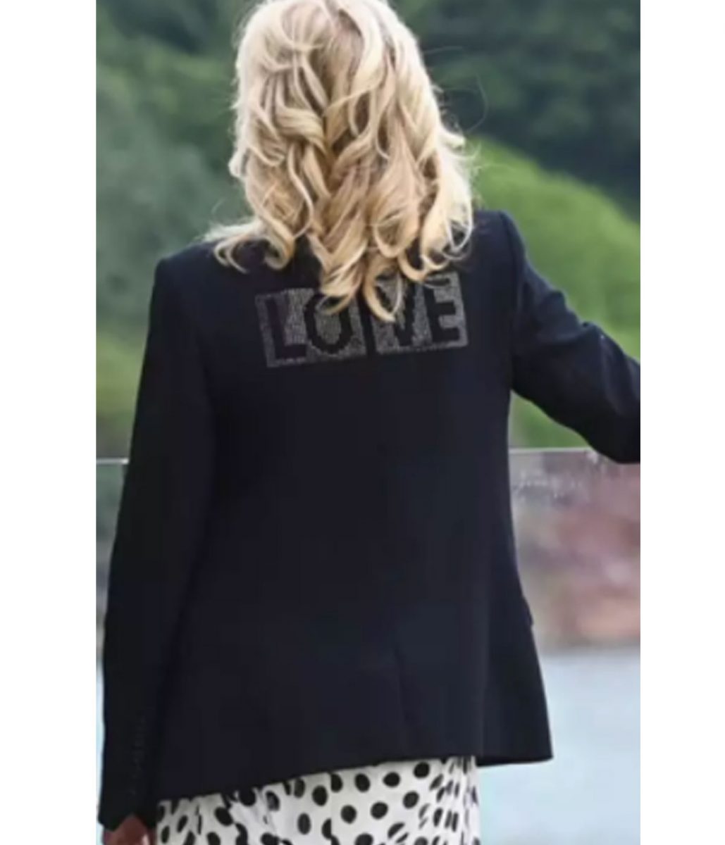 The Jill Biden Love Blazer is fabricated from good quality wool. The blazer comes in alluring black color. The blazer has a notched lapel collar with an open front and single button closure. The sleeves of Love Jill Biden Blazer are long with buttoned cuffs. The blazer is comfortable to wear as it has soft viscose lining on the inside. To keep things the blazer has front pocket with a single buttoned closure, two flap waist pockets outside and two pockets inside. The Love written at the back and metals studs give the blazer an attractive look. Fine quality stitching of First Lady Love Blazer adds to its perfection.