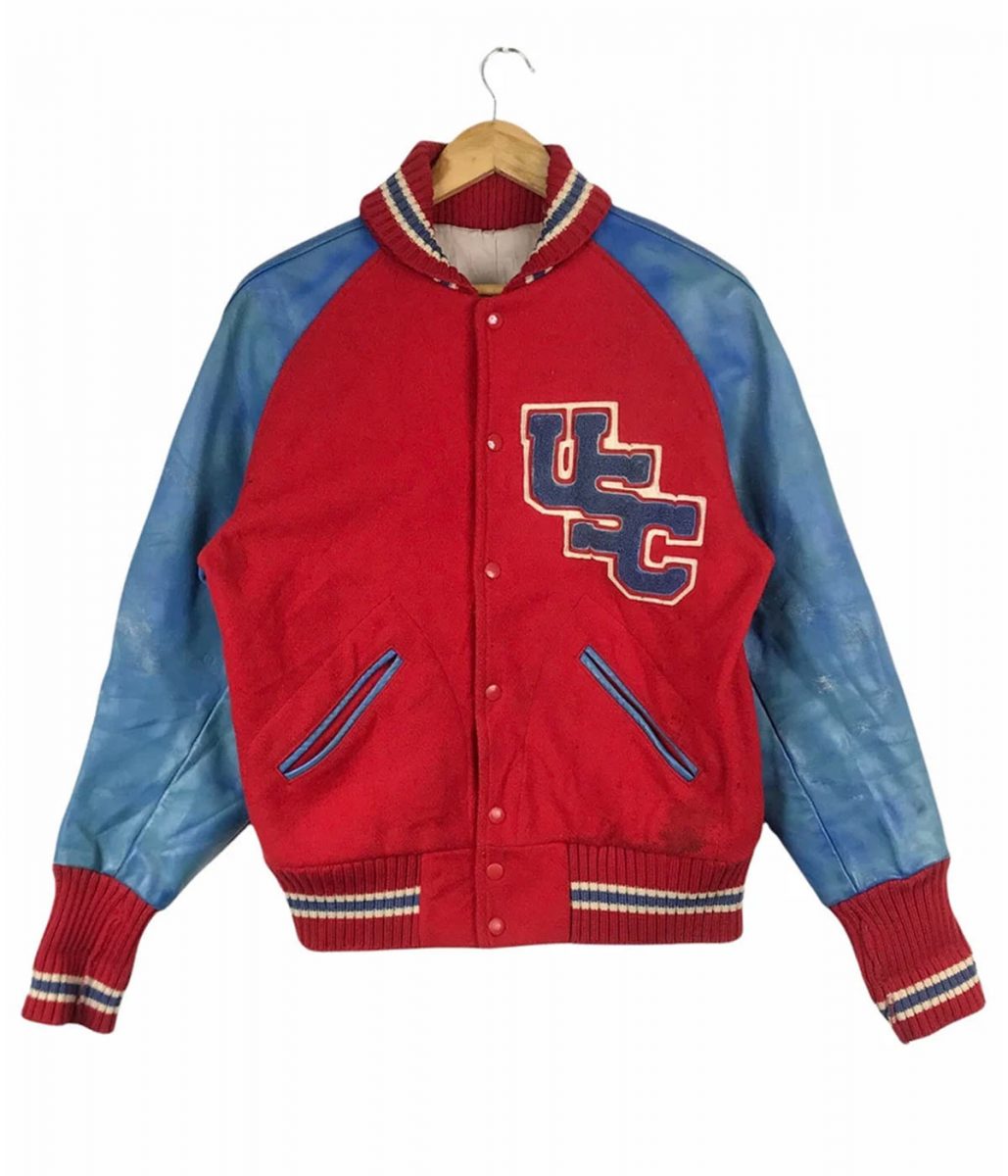 The USC Cardinal Baseball SC Interlock Varsity jacket body made wool and sleeves made from genuine leather. The jacket is available in a glorious red and blue color combination, which gives it an innovative and attractive look. The jacket has rib knitted collar. The jacket has buttoned front closure. A soft viscose inner lining of the jacket keeps you warm and relaxed. The sleeves of the USC Cardinal Baseball SC Interlock Letterman jacket are long with rib knitted cuffs. The jacket has two outer and two inside pockets. The fine quality stitching of USC Cardinal Baseball SC Interlock Varsity jacket makes it durable and desirable to wear. The jacket is an ideal choice to wear in parties.