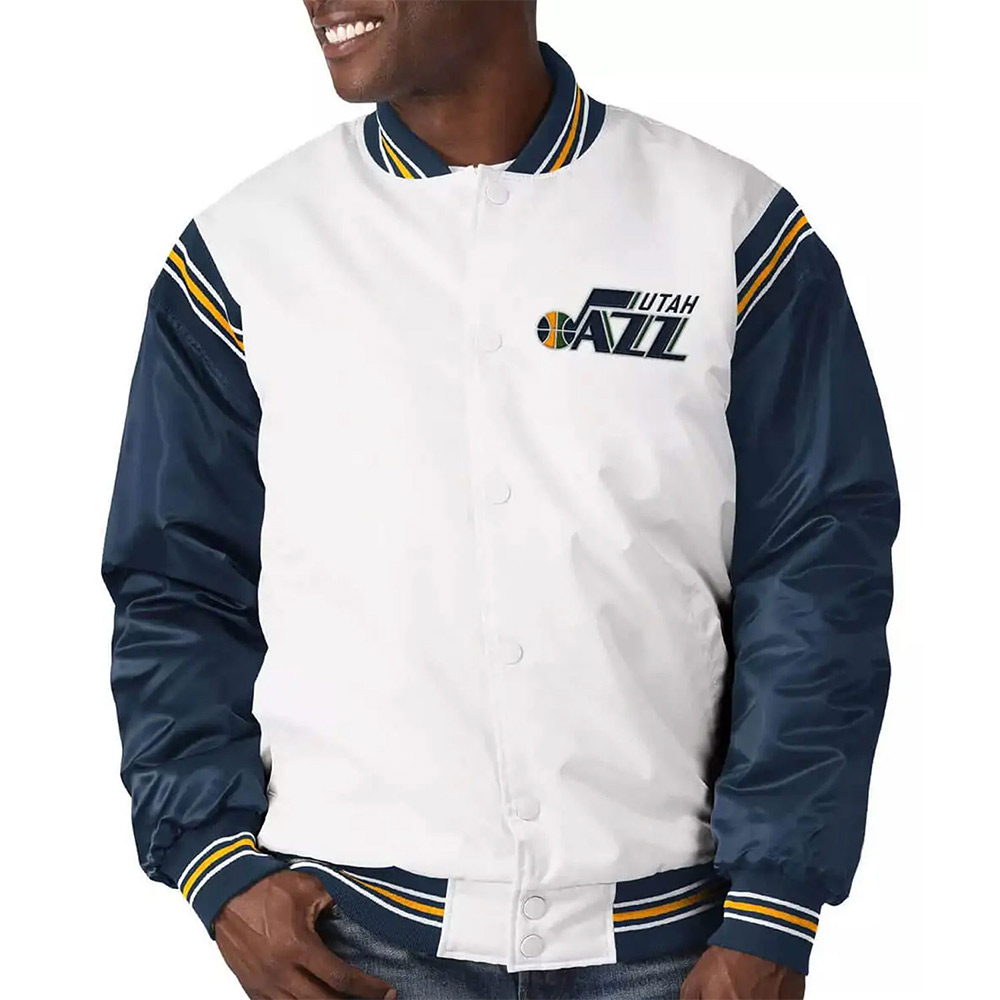 Starter White/Navy Utah Jazz Renegade Full-Snap Satin Varsity Jacket