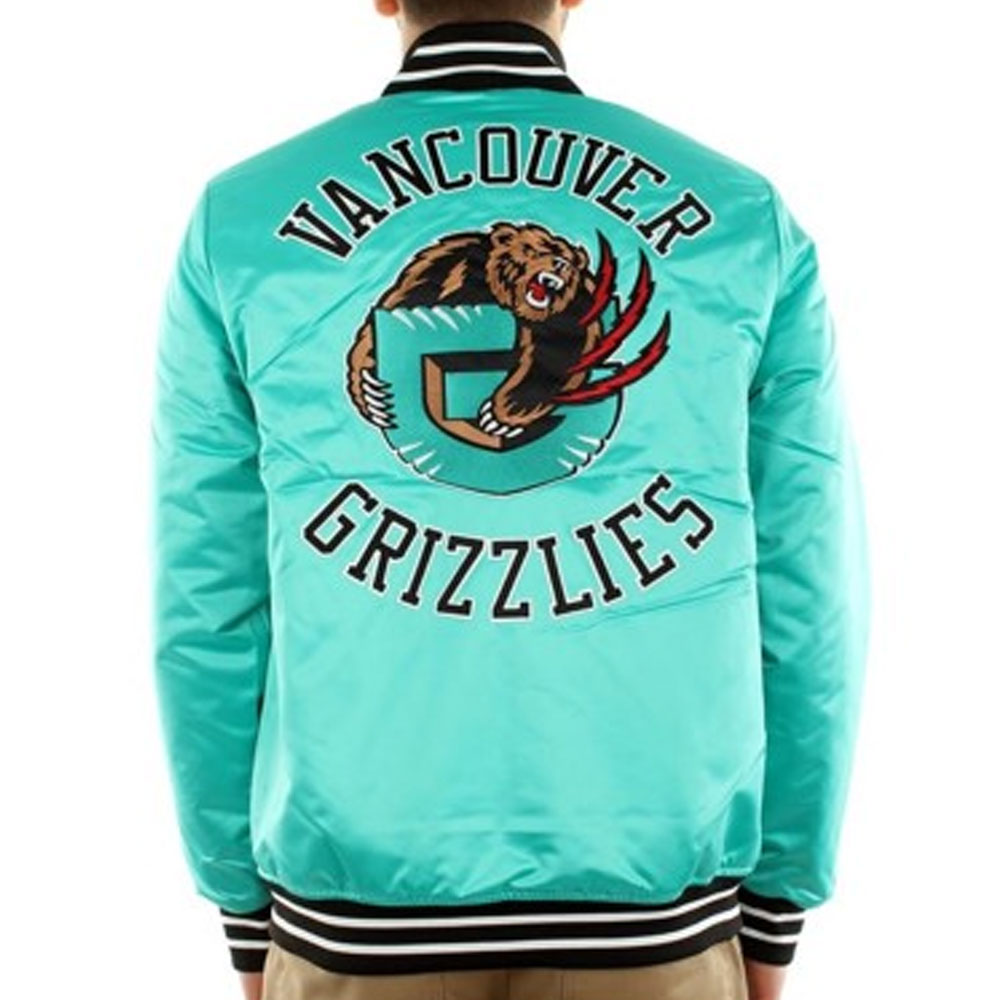 Aqua Vancouver Grizzlies Heavyweight Bomber Satin Full-Snap Jacket