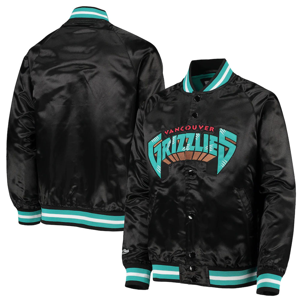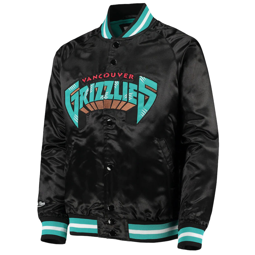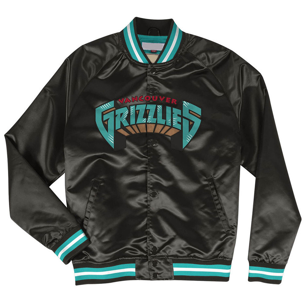 Step up your style game with the Vancouver Grizzlies Lightweight jacket, crafted from premium satin. Its mesmerizing black color exudes innovation and boldness. Featuring a rib knitted collar and buttoned front closure, this Vancouver Grizzlies Lightweight Satin jacket combines functionality with fashion. Stay warm and cozy with its soft viscose inner lining. The long sleeves with rib-knitted cuffs add a touch of sophistication. With two inner and two side pockets, this Chicago Bulls Flight Bomber jacket offers practicality. Experience comfort and desirability with the fine quality stitching. Perfect for parties, this jacket is the ideal choice to make a statement.