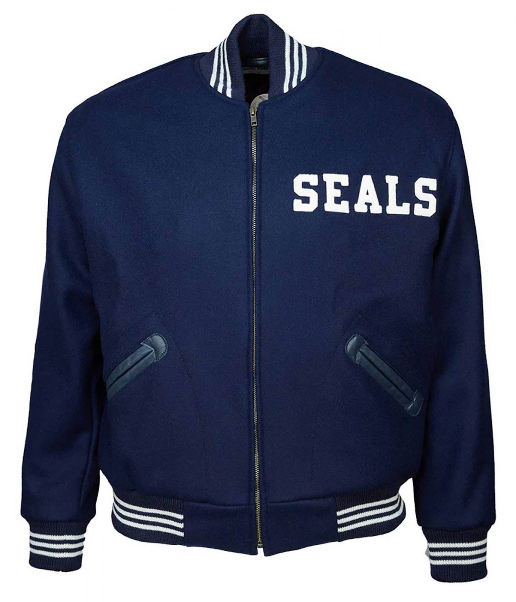 The San Francisco Seals 1955 jacket body made from high quality wool .The jacket is available in a majestic navy blue color, which gives it an innovative and striking look. The collar of the jacket is a rib-knitted style. It has a classical YKK zipper style front closure. A soft viscose inner lining of the jacket keeps you warm and relaxed. The sleeves of San Francisco Seals 1955 varsity jacket are long ends with rib-knitted cuffs. The jacket has two side waist pockets for keeping stuff. The fine quality stitching of the San Francisco Seals 1955 jacket makes it durable and desirable to wear. The jacket is an ideal choice for stylish men and women.