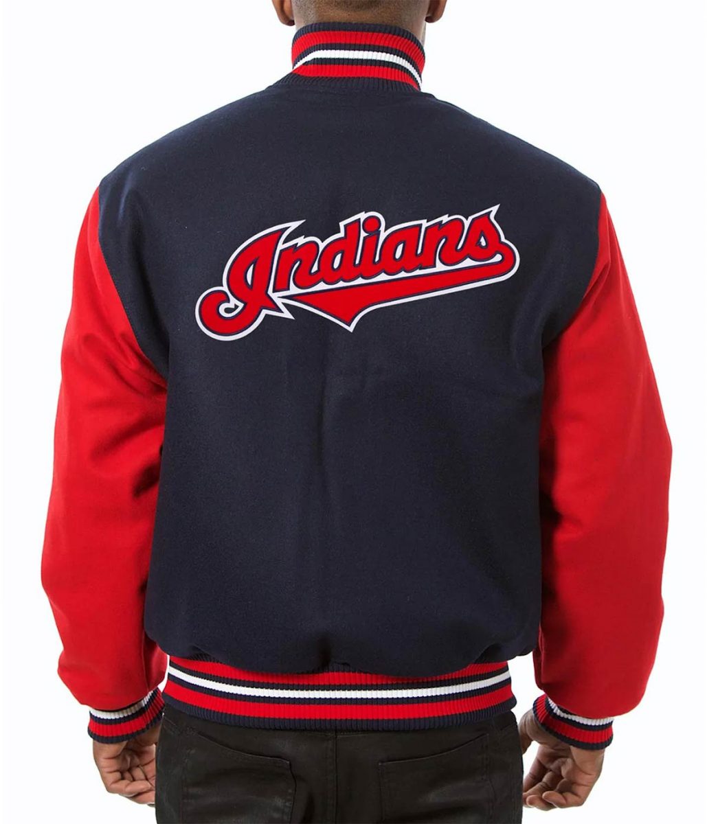 The Cleveland Indians navy blue and red varsity jacket external Body made from wool. The combination of navy blue and red colors gives the jacket an elegant, classical look. The jacket have a graceful rib-knitted collar to make your neck less stiffened and tiring. It has a calm but effectual snap tab buttoned front closure with rib knitted hemline. A soft viscose inner lining of the jacket helps you to feel warm and cozy. The sleeves of the Cleveland Indians varsity navy and red jacket are perfectly fitted having rib-knitted cuffs. The two side waist pockets in the jacket especially designed for saving your money and valuable products. The smooth quality stitching of the Cleveland Indians navy blue and red varsity jacket makes it desirable to wear. The Jacket Master offers you a wide range of sizes and designs to help in your choice. Different size, styles and colors with option of customization make Jacket Masters different from other brands. The jacket is a perfect choice for sport lovers.