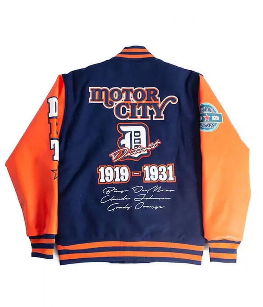 NLBM Team Detroit Stars Orange and Blue Baseball Varsity Jacket