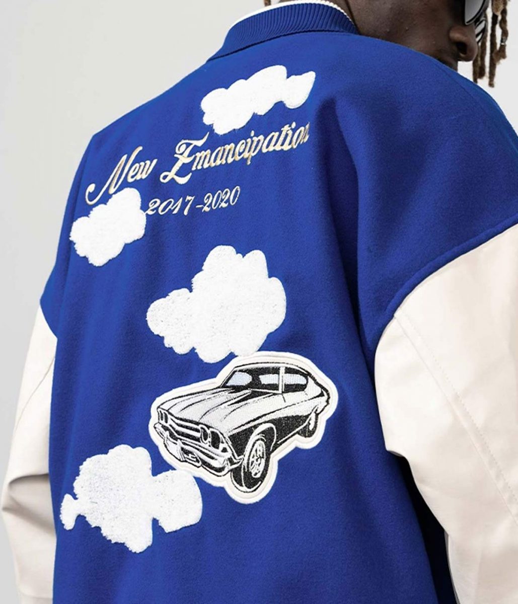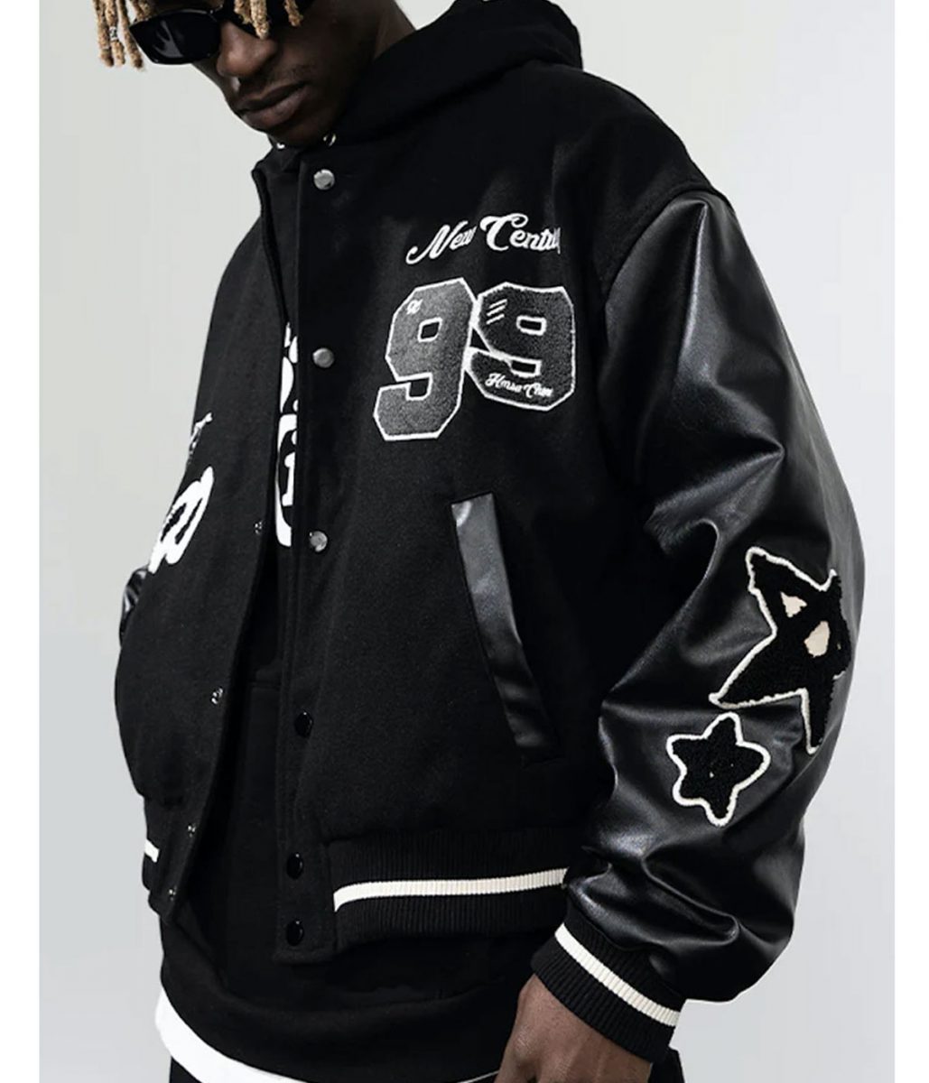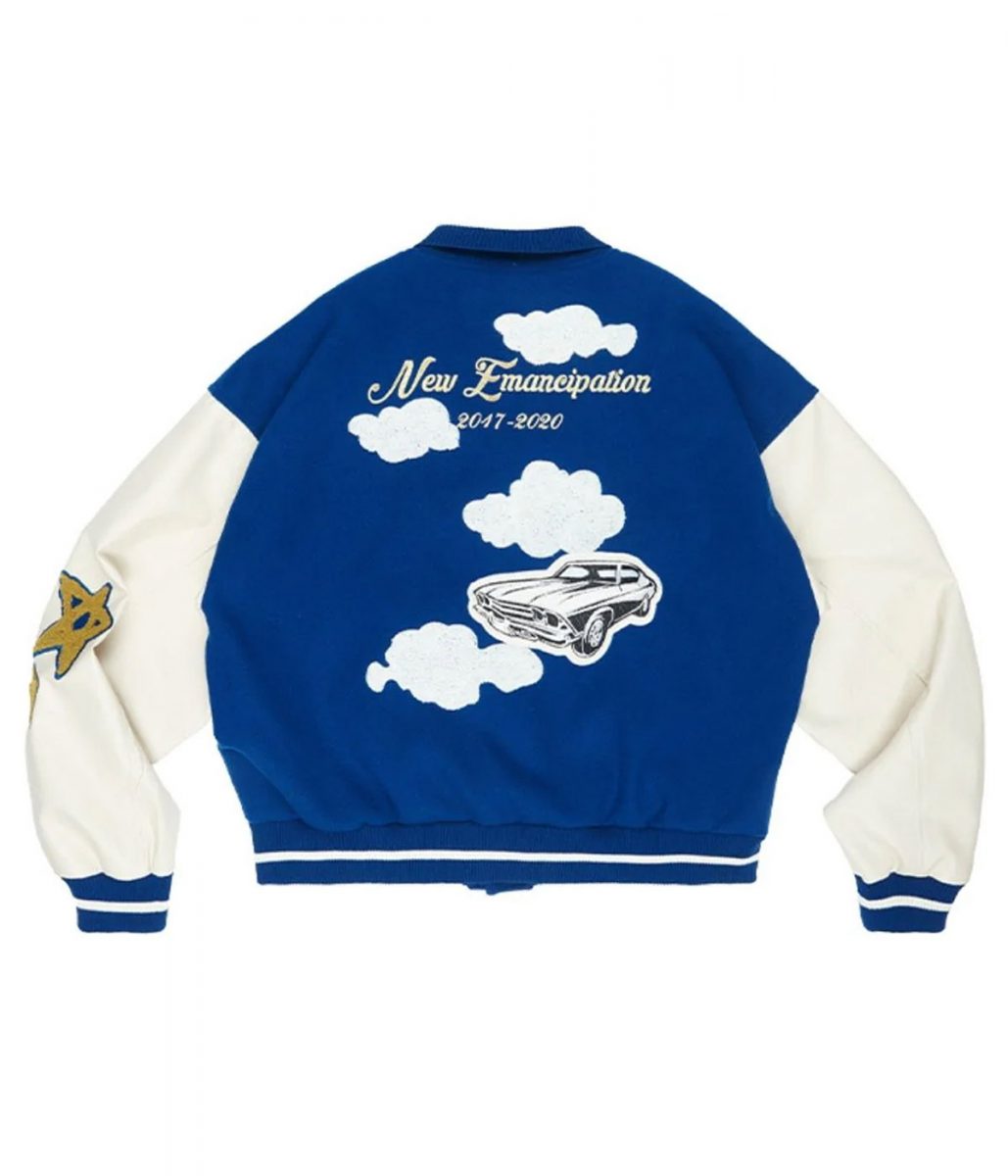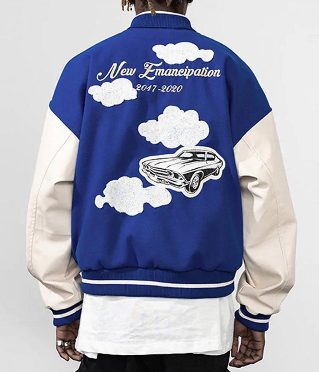 Harsh and Cruel New Emancipation Varsity jacket body made from high quality wool and sleeves made from genuine leather. The jacket is available in mesmerizing black and blue color combination, which gives it innovative and striking look. The collar of the jacket is rib knitted style. It has a classic snap tab buttoned front closure. A soft viscose inner lining of the jacket keeps you warm and relaxed. The sleeves of New Emancipation Harsh and Cruel Varsity jacket are full-length ends with fitting. The jacket has two side waist pockets for keeping stuff. The fine quality stitching of Harsh and Cruel New Emancipation Varsity jacket makes it durable and comfortable to wear. The jacket is an ideal choice for stylish men and women.