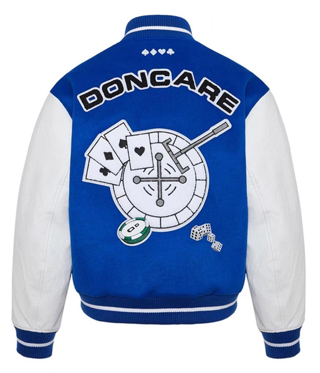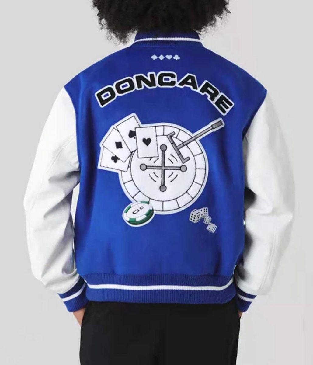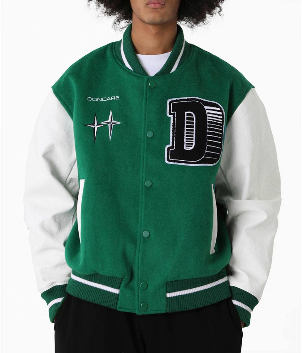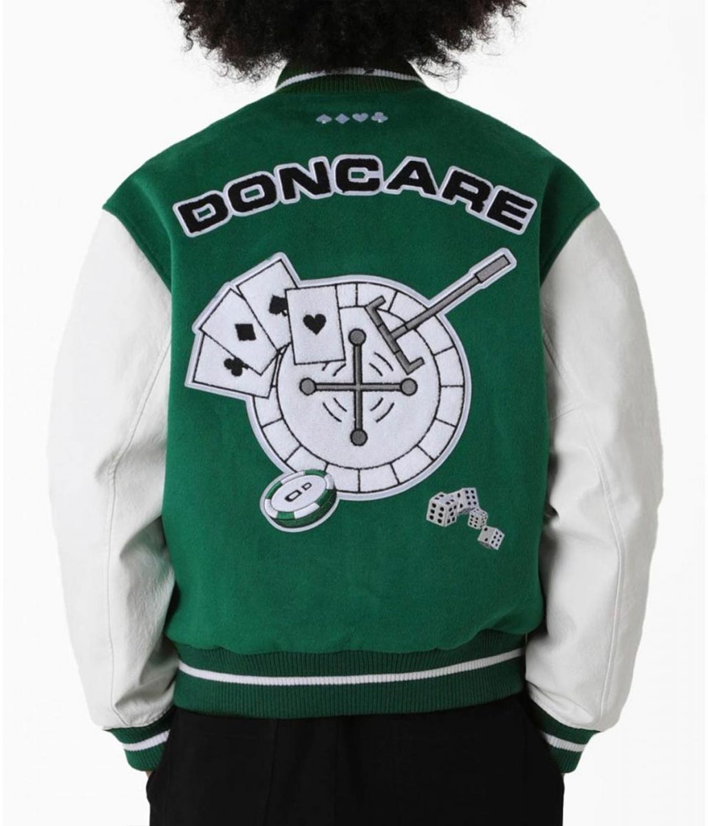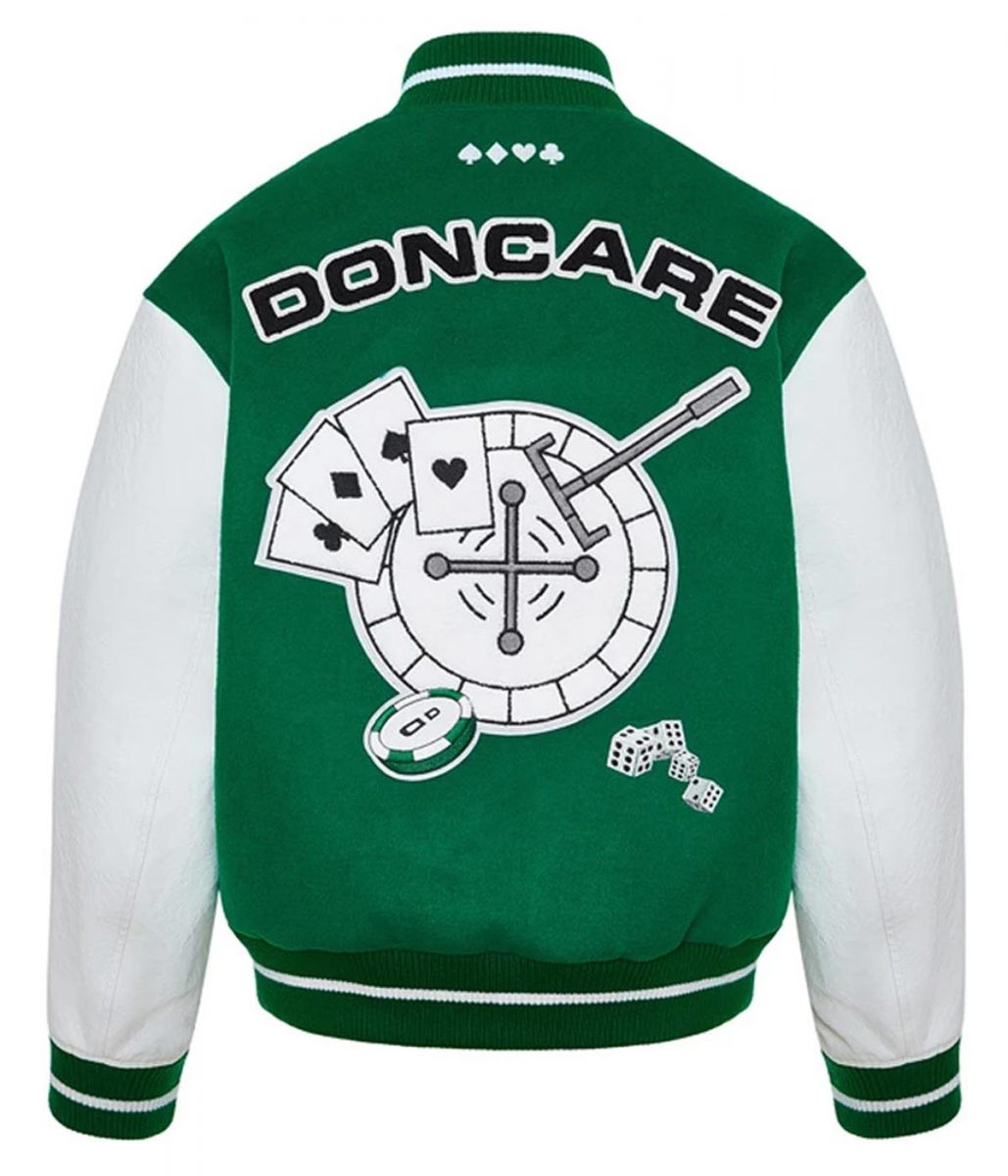 Doncare The Gambler White and Green/Blue Varsity Jacket
