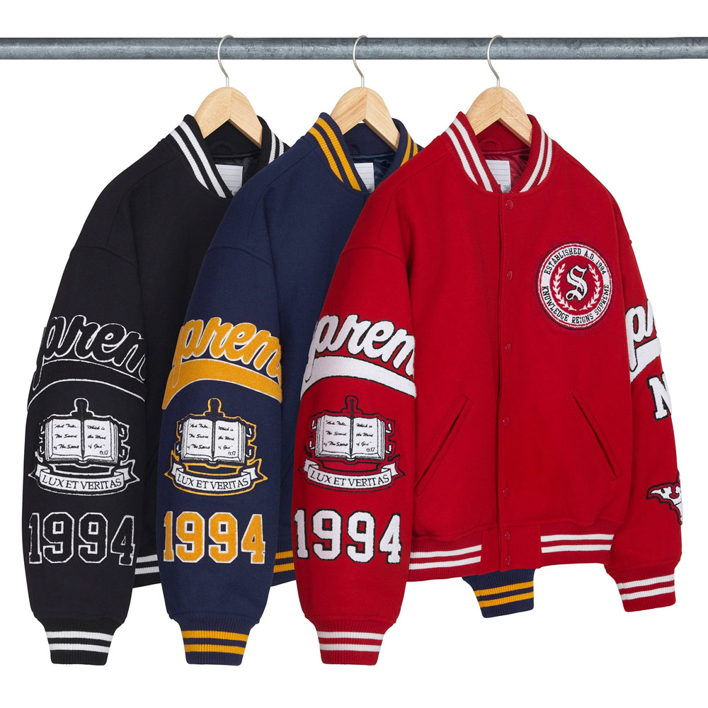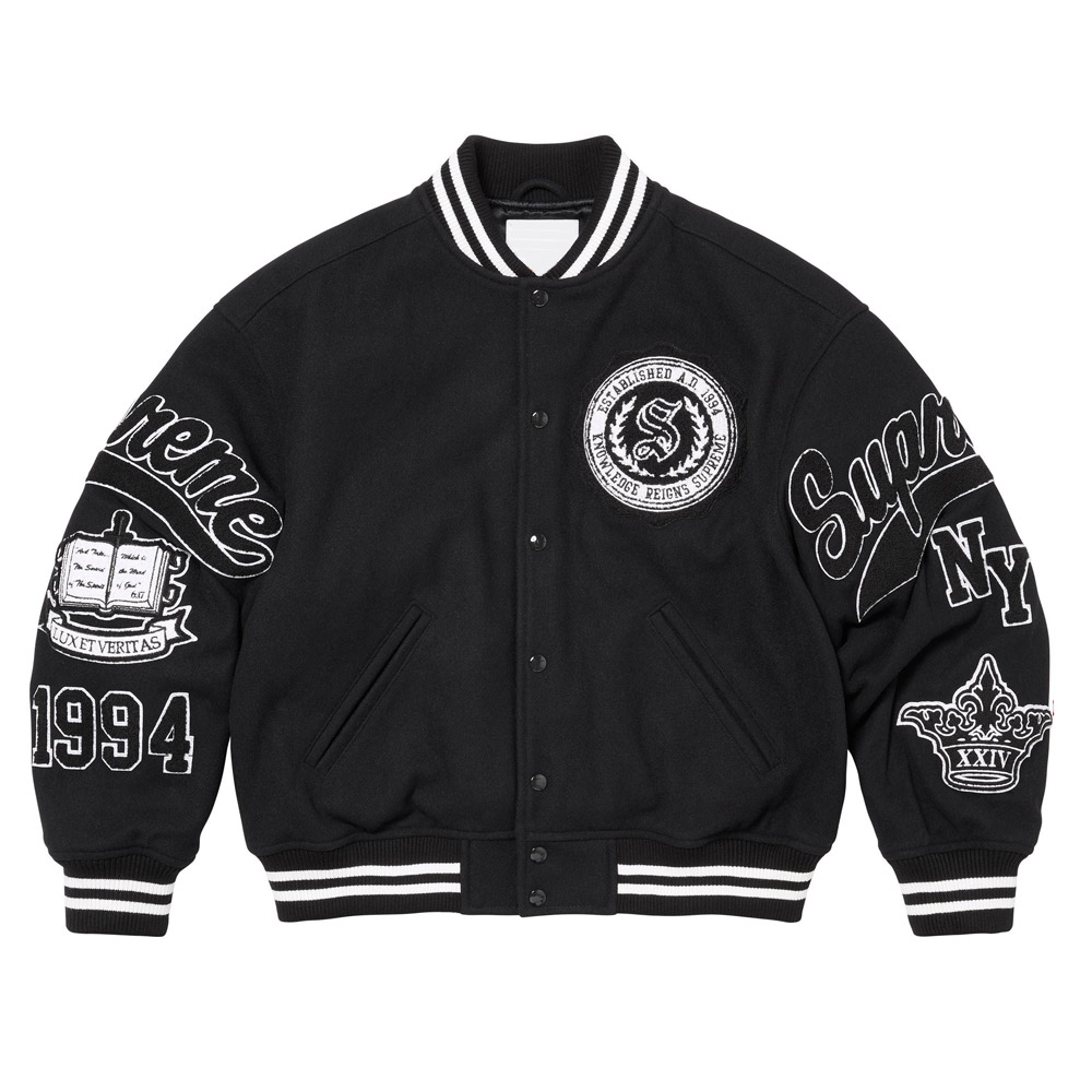 The logo on the chest being very unique reflects the quality and prestige of the Supreme brand to wherever you go to. Inside and out this Supreme Veritas Varsity Jacket is superbly sewn together, it arrives with style that will last for many a year.