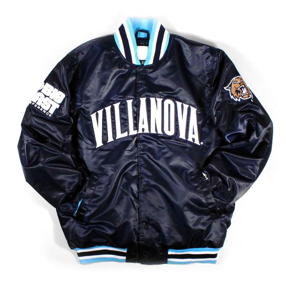 Get ready to captivate everyone with your charisma and uniqueness while wearing the Villanova Wildcats Jacket – a perfect combination of fashion and comfort for everyone. This gorgeous jacket is made out of satin material that’s satiny and has a heavy shine and glamour, which makes it rather pretty, light in weight and durable. The outer shell is made of viscose, a fabric that renders a very soft and silky touch on the skin, making it comfortable to wear as it is fashionable. The outerwear is based in a beautiful deep navy blue that will definitely appeal to the businesswomen during the working week and the MTV style freak during the weekend. A full snap closure on the front is usable while looking classy and chic, which enables easy opening and closing of the dress.