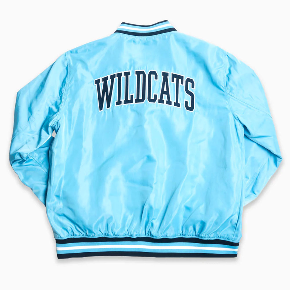 This Script Villanova Wildcats jacket, which was inspired by the legendary Villanova Wildcats basketball team, will elevate your look on game day. Made from premium satin material that has an opulent feel, this jacket is expertly crafted with great attention to detail. Its soft blue hue gives it a sophisticated touch that makes it appropriate for all sexes. This jacket’s traditional rib-knit collar and snug-fitting rib-knit cuffs are characteristics that combine comfort and style. This Villanova Wildcats Script Light Blue jacket is made of high-quality stitching that ensures durability and displays the team emblem prominently on the chest and back, expressing your undying support for the Wildcats. It will be a valuable addition to your wardrobe.The rib-knitted hemline adds a touch of refinement, and the full snap tab front fastening makes getting on and off simple. The sleek appearance of the long, fitting sleeves goes well with any ensemble. This Script Villanova Wildcats jacket is the ideal choice whether you’re headed out for a casual day or attending the game from the stands.