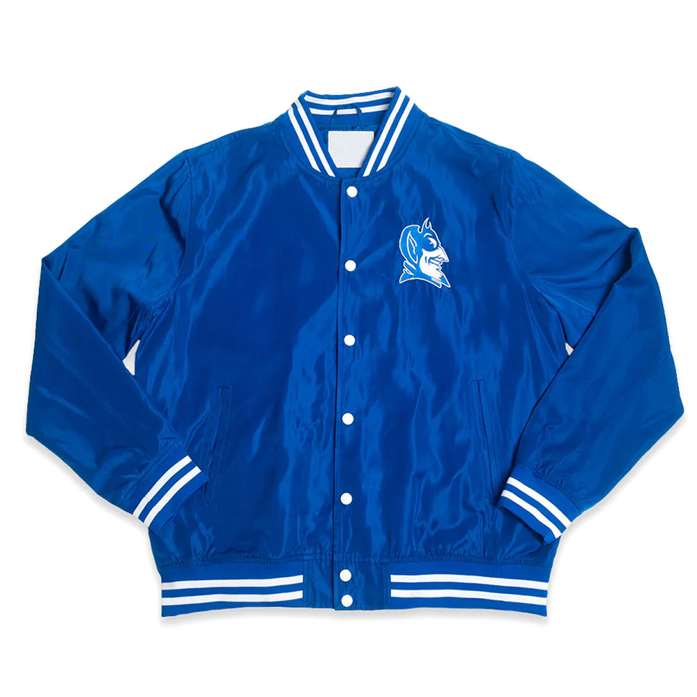 Royal Vintage-Inspired Duke Blue Devils Full-Snap Satin Bomber Jacket
