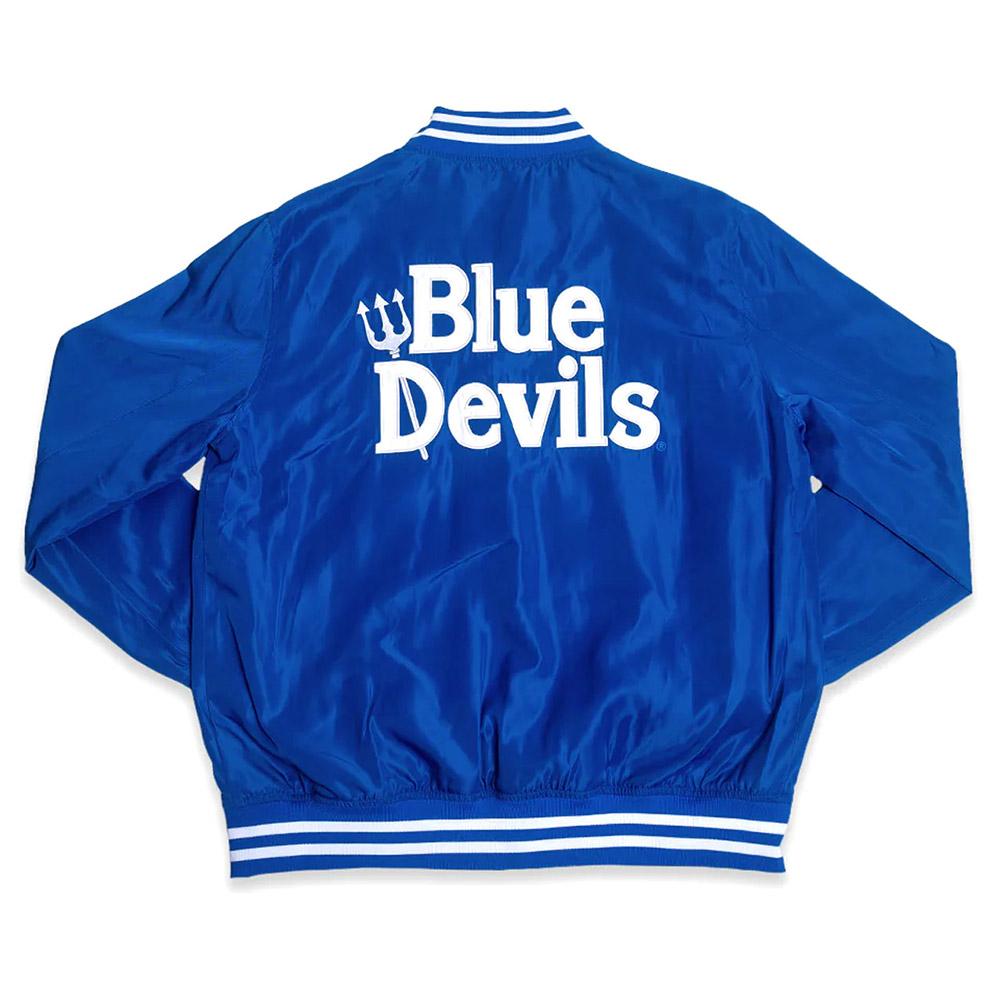 Acquiant the Duke Blue Devils Bomber jacket, a tribute to the formidable spirit of the Duke Blue Devils. Whether you’re a die-hard fan or a casual enthusiast, this premium satin jacket is designed to make a bold statement. Inspired by the Blue Devils’ legacy, this jacket boasts a rich Royal Blue color, reflecting the team’s prestige. The full-snap front closure, classic rib-knit collar, and rib-knitted cuffs offer both style and functionality, making it suitable for fans of all genders. Emblazoned with the iconic team logo on the chest and back, this Vintage-Inspired Duke Blue Devils Royal Bomber jacket is a visual testament to your unwavering support for the Blue Devils. The smooth and luxurious inner lining ensures comfort, making it a versatile choice for game days, social events, or everyday wear. Precision is paramount, and the rib-knitted hemline and long, fitted sleeves add a touch of sophistication. The fine quality stitching guarantees durability of Duke Blue Devils Bomber jacket allowing you to showcase your Blue Devils pride for seasons to come.