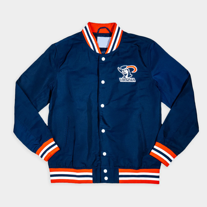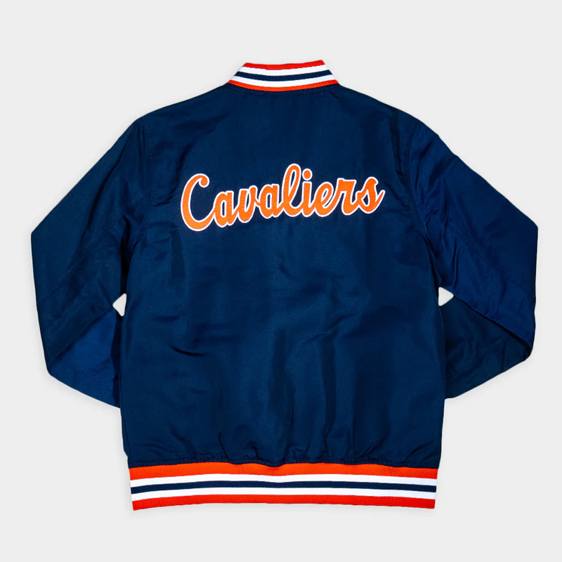 Get your team spirit represented with the Virginia Cavaliers Jacket which promotes both style and comfort while being a symbol of your love and admiration to the basketball team. This unisex bomber-style jacket has been expertly made from premium satin material and is light weight and durable so it’s perfect for fan or fashion enthusiast. Its navy color gives it a sleek, timeless appeal making it a versatile addition for the wardrobe.