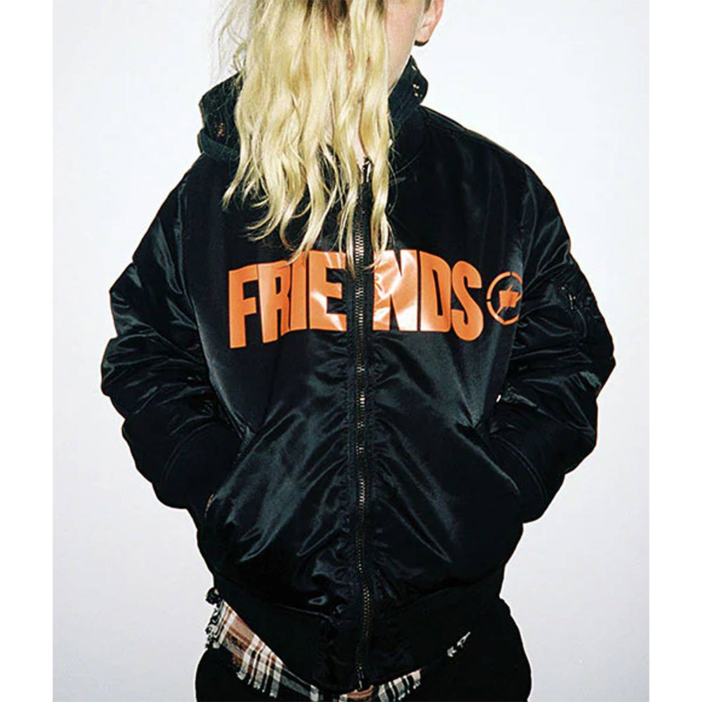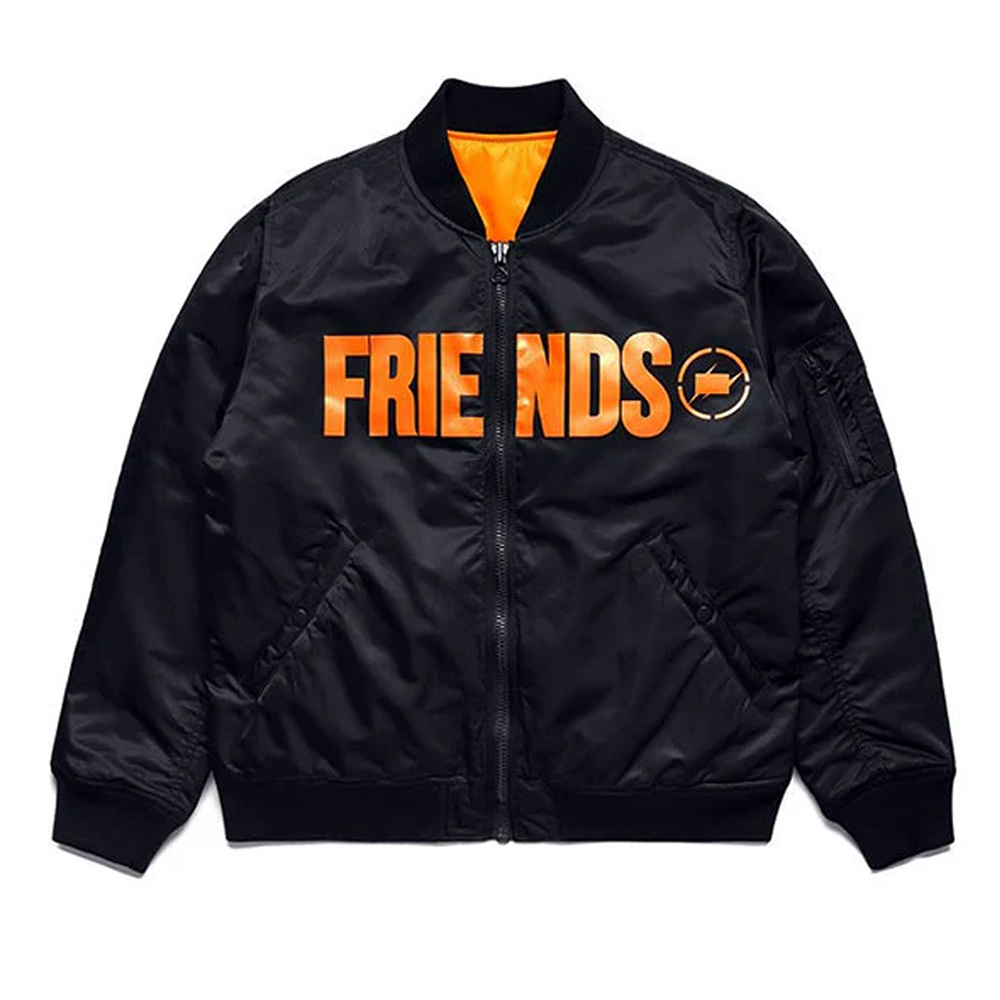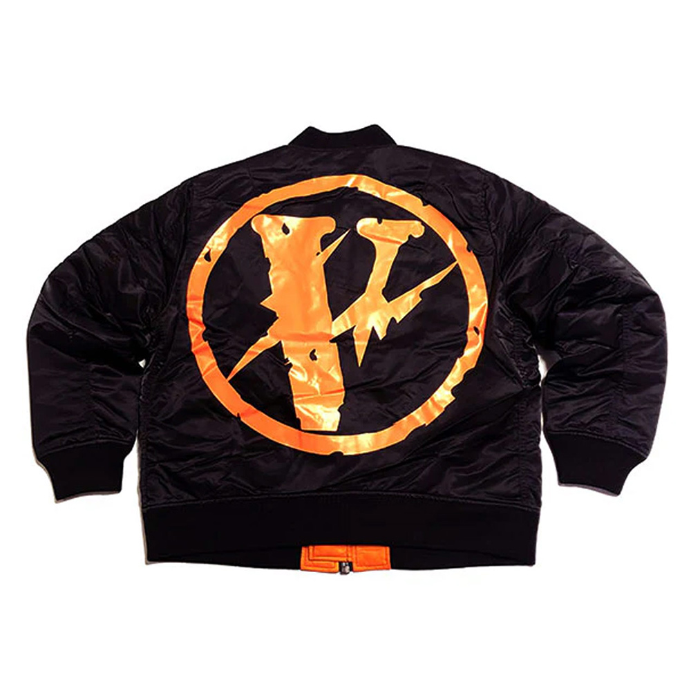 Embrace the fusion of streetwear edge and high-fashion allure with the Vlone Friends Fragment Bomber Jacket, a statement piece that transcends trends and captures the essence of modern sophistication. Whether layered over casual attire or paired with evening ensembles, this jacket is destined to become a timeless wardrobe staple, seamlessly blending urban chic with refined elegance.
