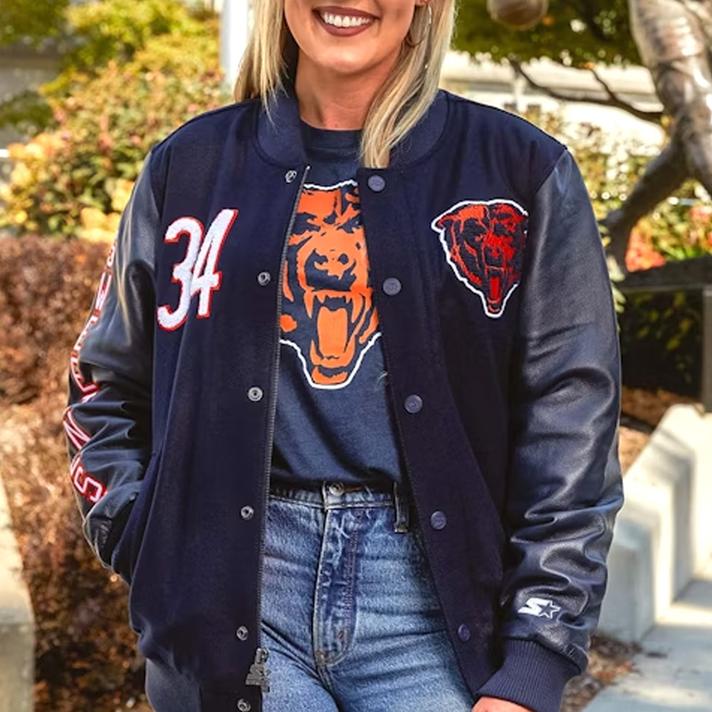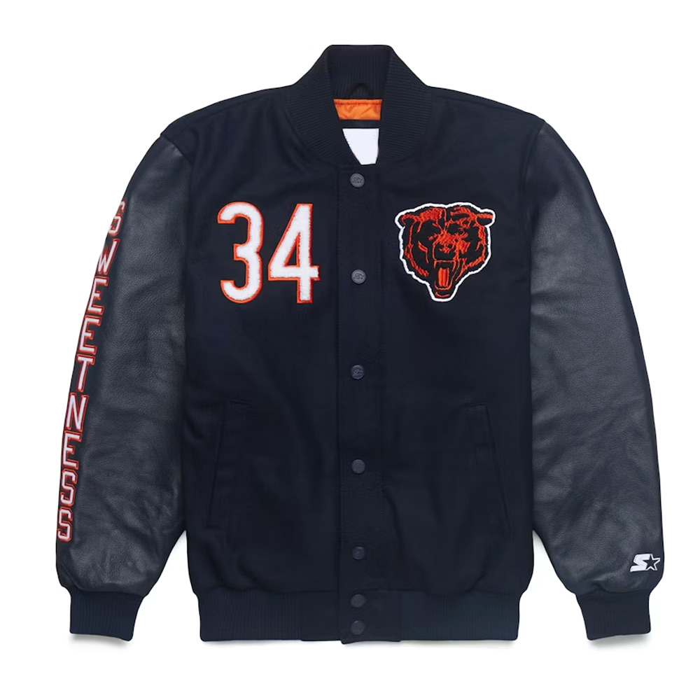 The Walter Payton Jacket is designed with fine stitching in all its parts, and is a stylish and comfortable tribute to a great sportsman to wear on any day.