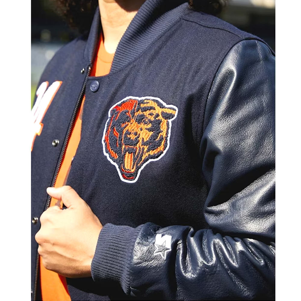 Walter Payton Navy Varsity Letterman Wool/Leather Jacket