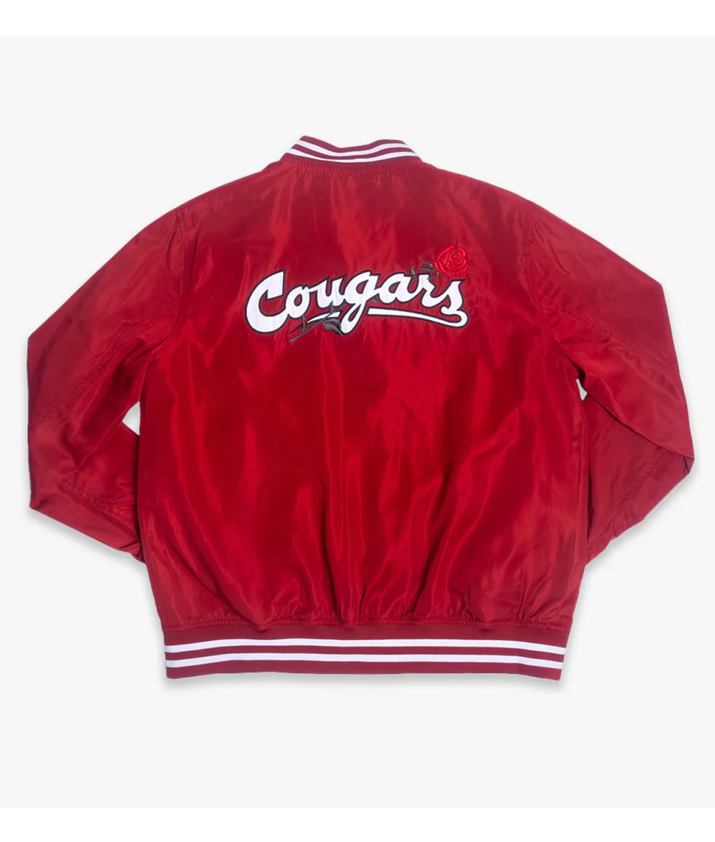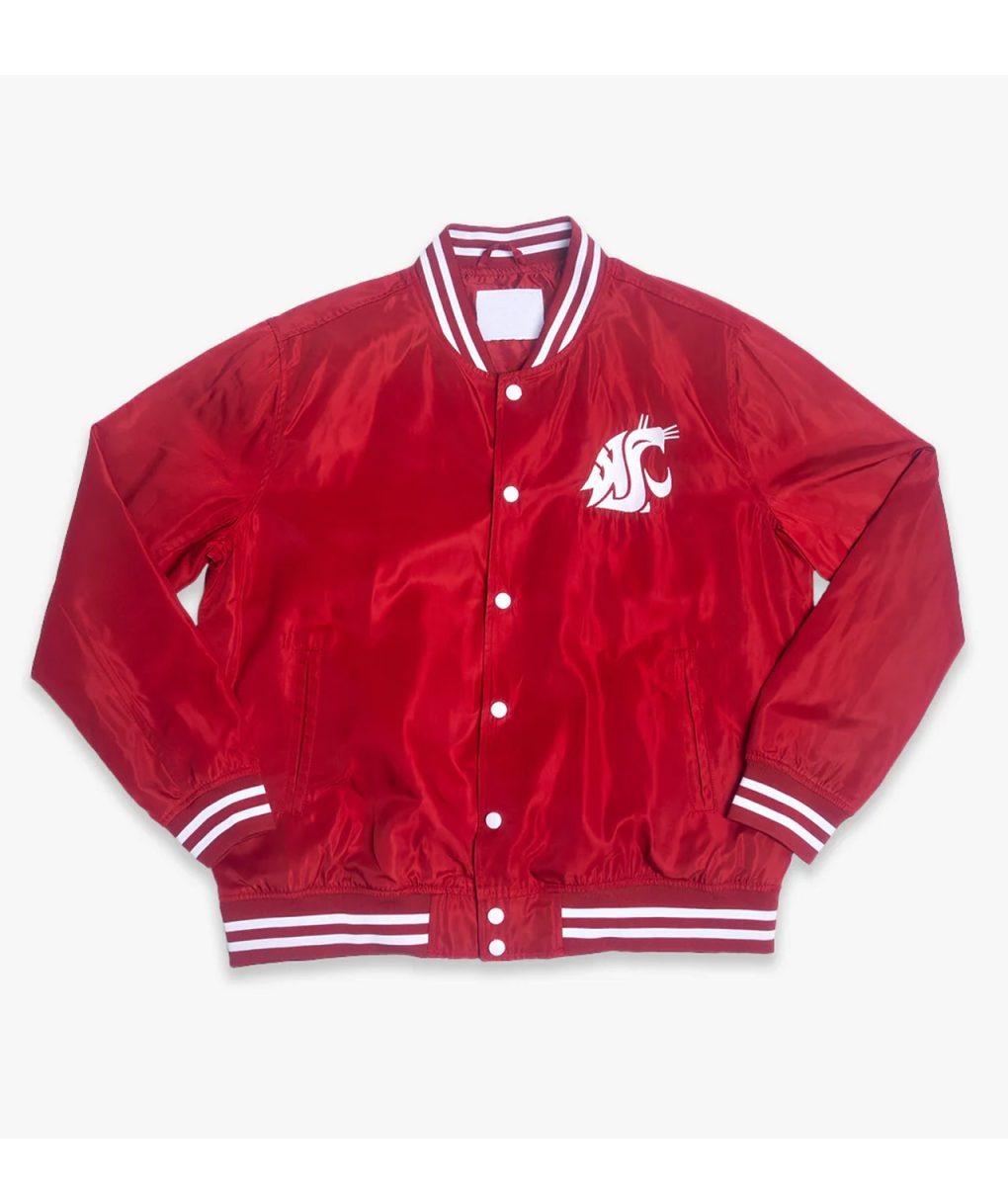 Introducing our versatile Script Red Wazzu Cougars Jacket, a stylish ensemble suitable for all genders. Crafted from smooth satin material and lined with Viscose, this jacket offers a luxurious feel and comfort in one. The vibrant red color adds a bold statement to your wardrobe. The front features a snap tab buttoned closure for easy wear, while the rib-knitted striped collar, cuffs, and waistband provide a sporty yet refined touch. Meticulously stitched for a fine finish, the jacket ensures durability. Two practical waist pockets offer convenience without compromising style. The highlight is the iconic Wazzu Cougars Throwback Script logo embellishing both the front and back, adding a touch of nostalgia and team spirit to your look. Elevate your fashion game with this premium Wazzu Cougars Throwback Roses Script Bomber Jacket that seamlessly combines comfort, style, and team pride.