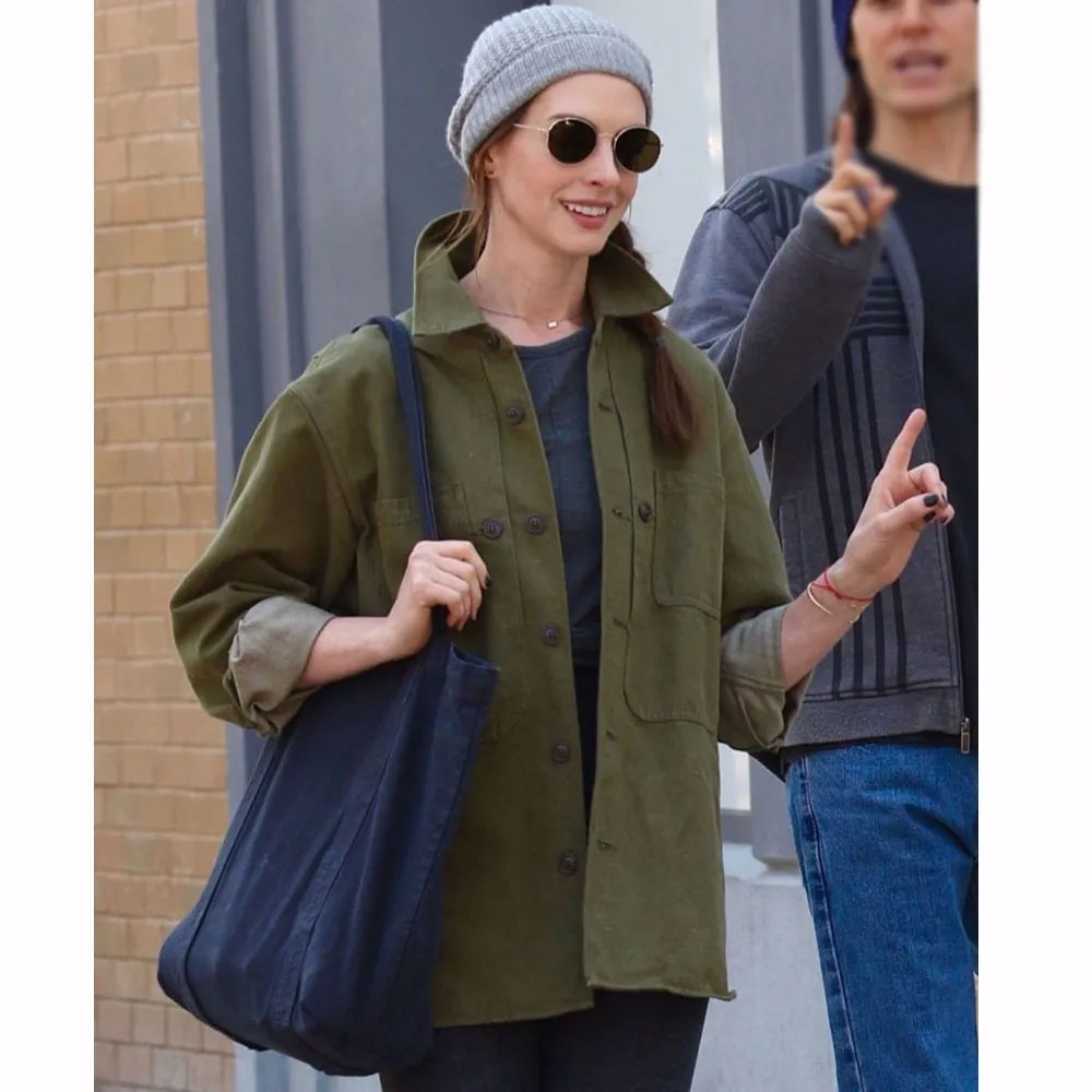 The Anne Hathaway Wecrashed jacket is made from high quality cotton. The jacket is available in a majestic green color, which gives it an innovative and enchanted look. The jacket has shirt style collar. The jacket has Branded YKK zipper front closure. A soft viscose lining of the jacket keeps you warm and relaxed. The sleeves of the Rebekah Neumann jacket are long with open hem cuffs. The jacket has two inner and two side pockets. The fine quality stitching of Anne Hathaway Wecrashed jacket makes it durable and desirable to wear. The jacket is an ideal choice to wear in parties.