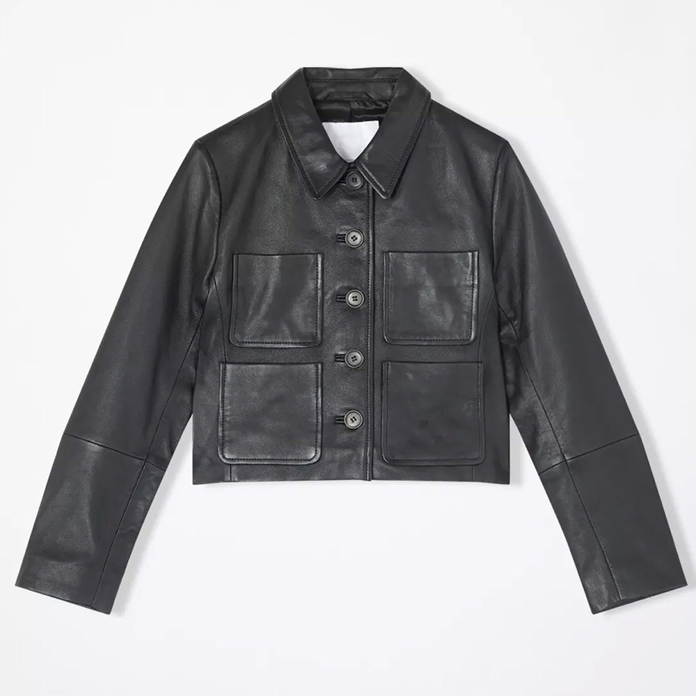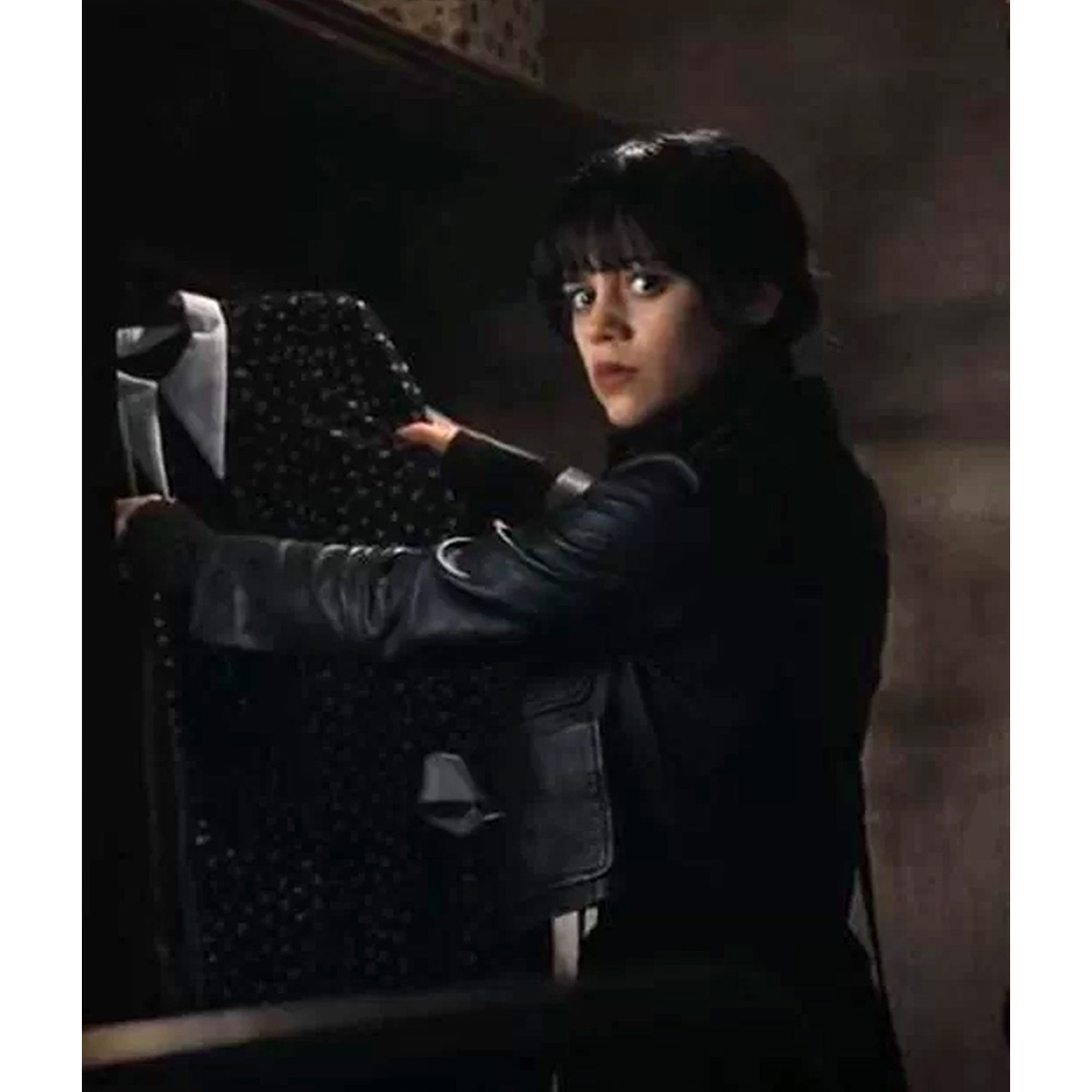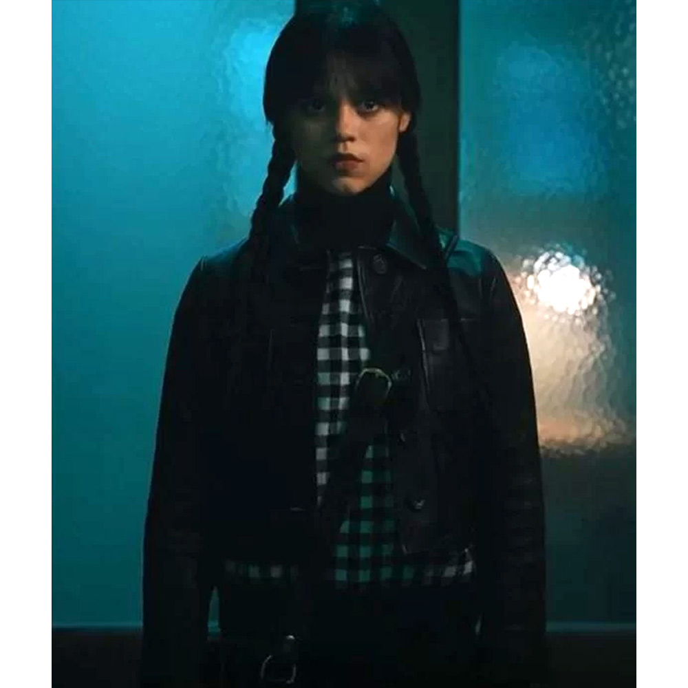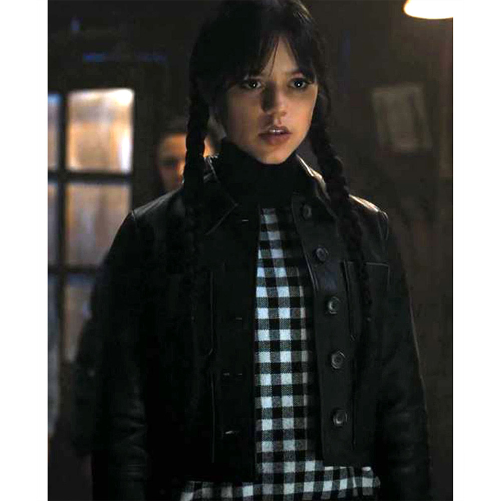 Jenna Ortega Goody Wednesday Addams Cropped Leather Jacket