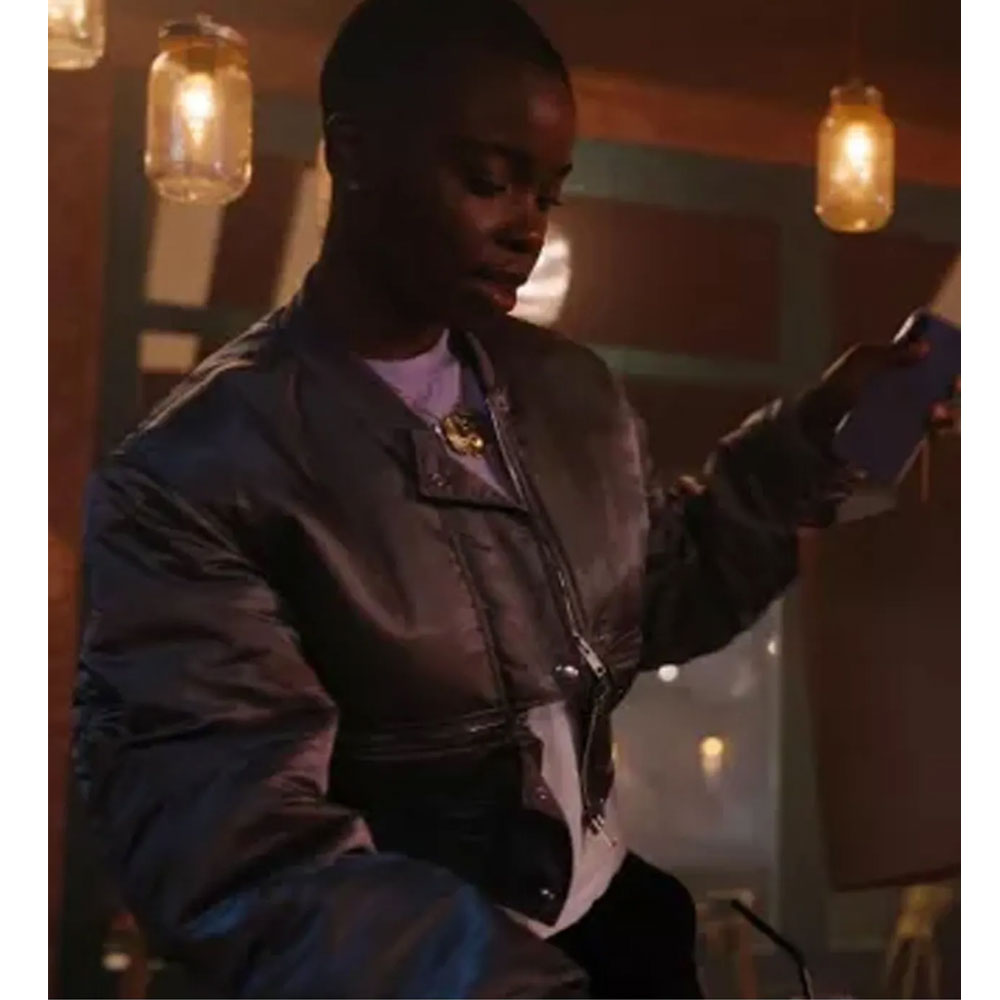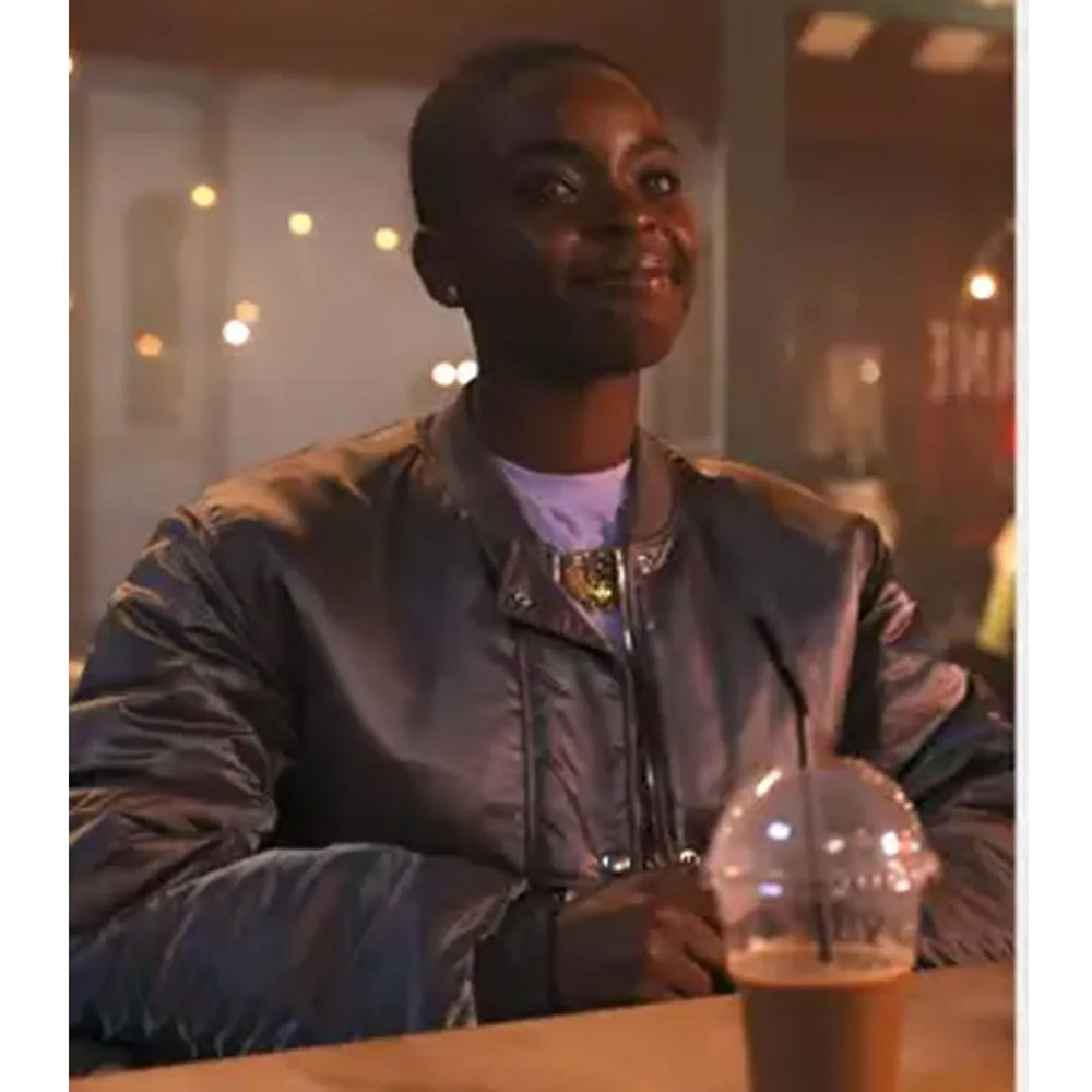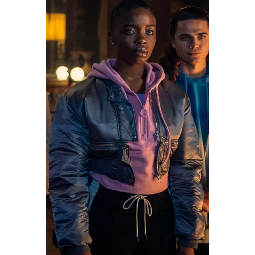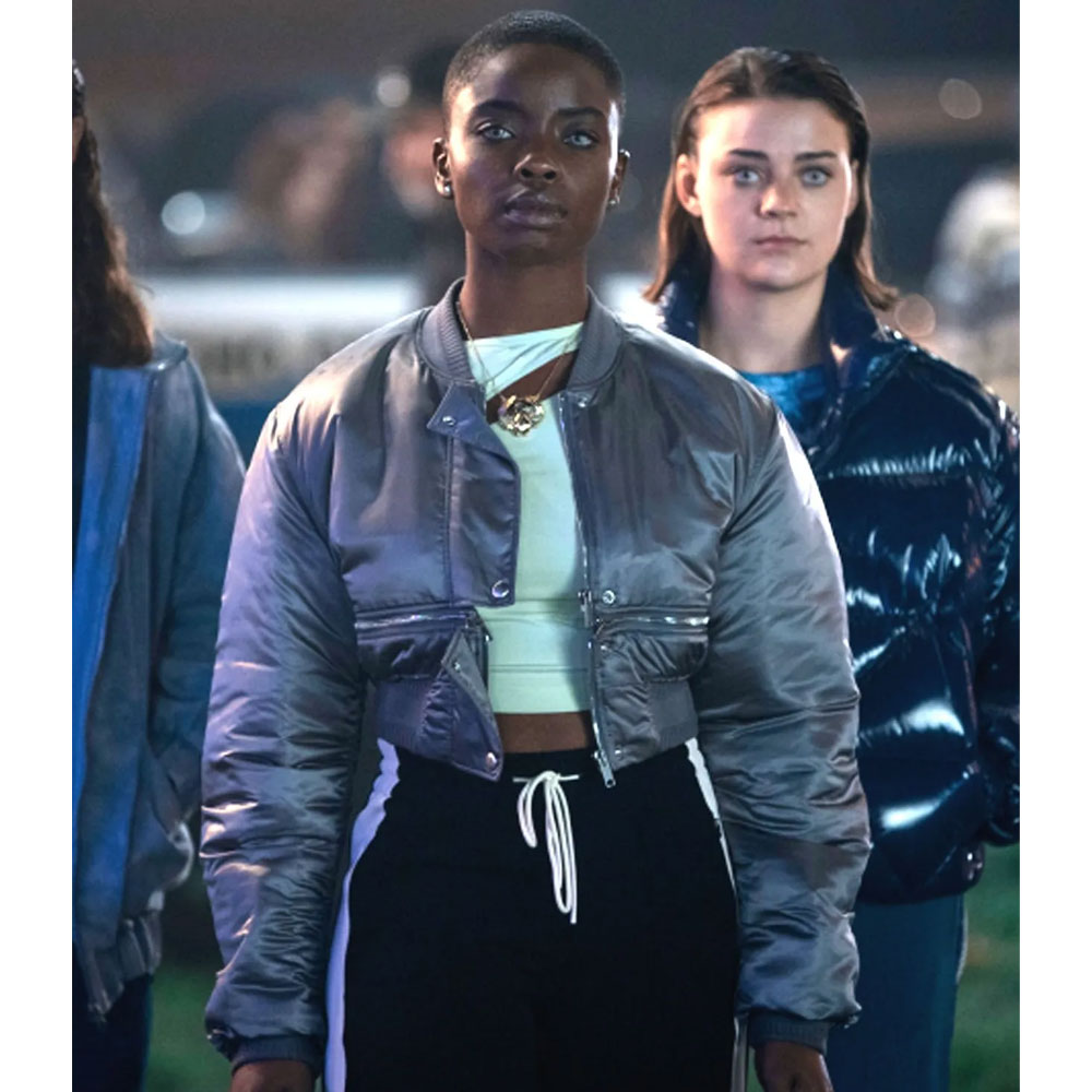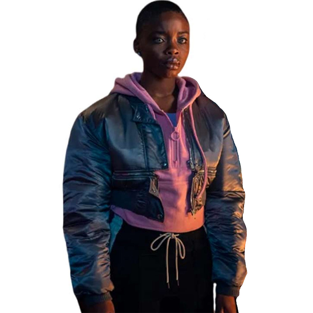 Joy Sunday Wednesday Bianca Barclay Bomber Cropped Satin Jacket