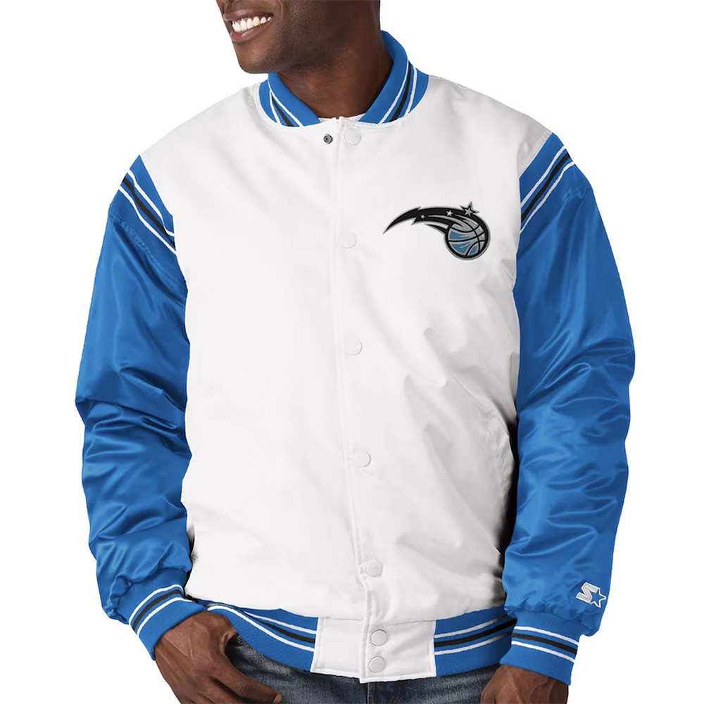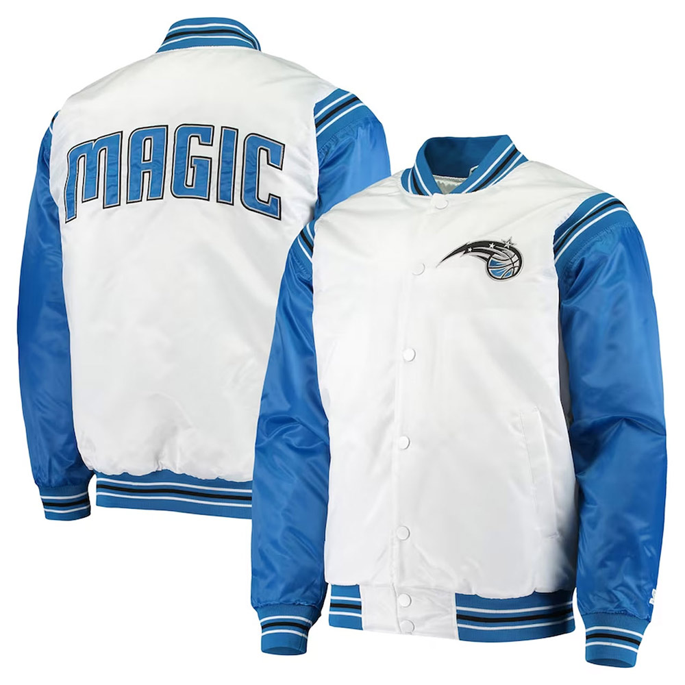 Starter Renegade Orlando Magic White/Blue Varsity Satin Full-Snap Jacket