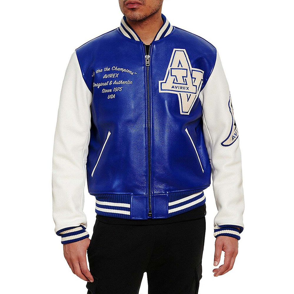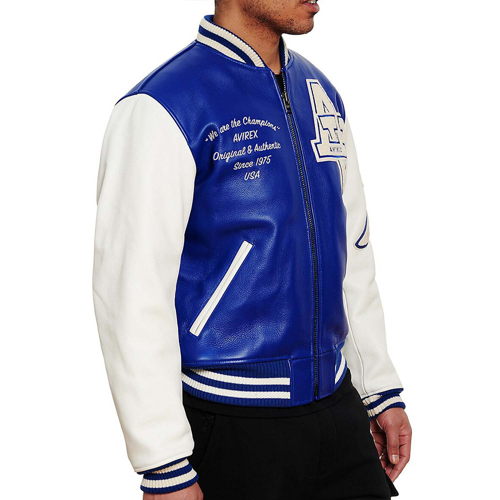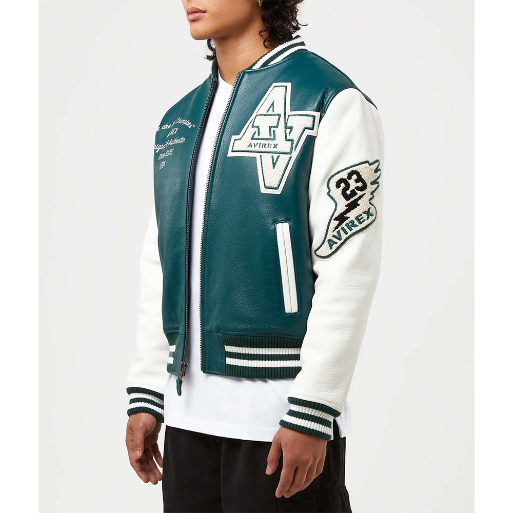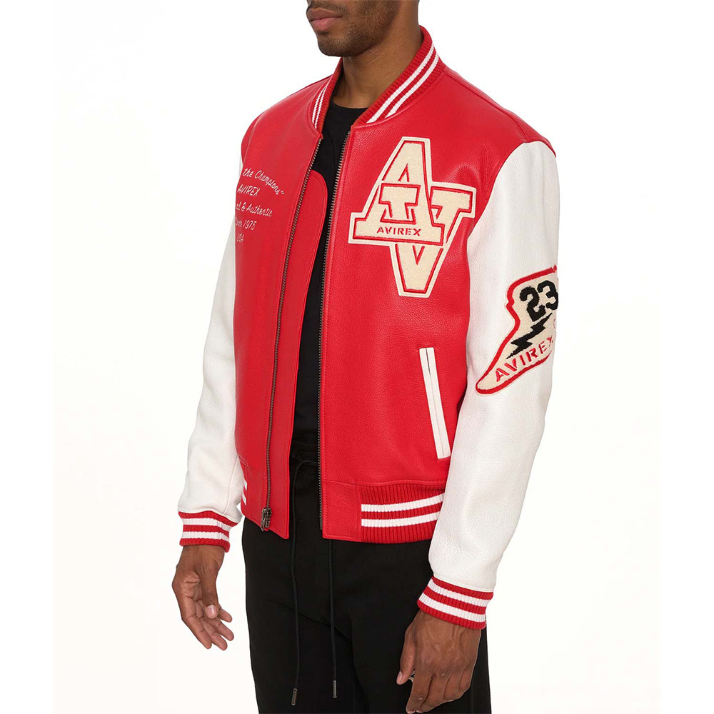 Turn heads with your alluring appearance with the Avirex Wildcat Varsity jacket made from genuine leather with a soft viscose lining inside offering comfort. This modern jacket is available in compelling color options that can enhance your charm and highlight edgy features like rib-knitted cuffs, collar, and hemline. The Avirex Wildcat Varsity leather jacket has a zipper fastening closure that provides unrestricted movement. Keep your stuff along with you anywhere you go with its two waist zipper pockets outside and inside pockets. Avirex Wildcat graphics on the front back and sleeve boost your gaming spirit.