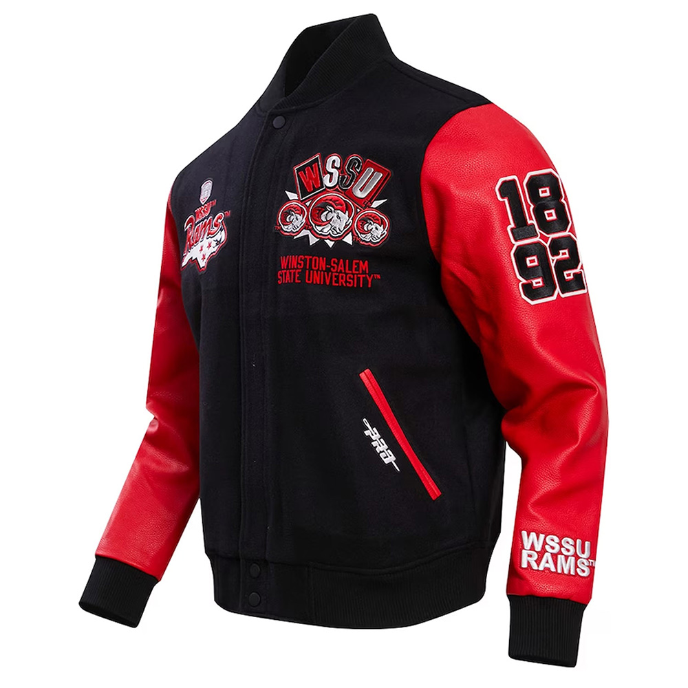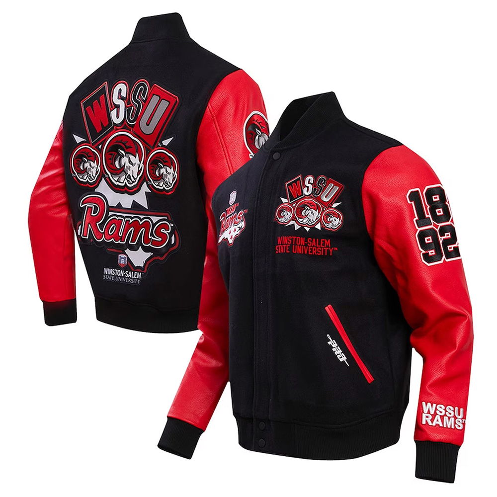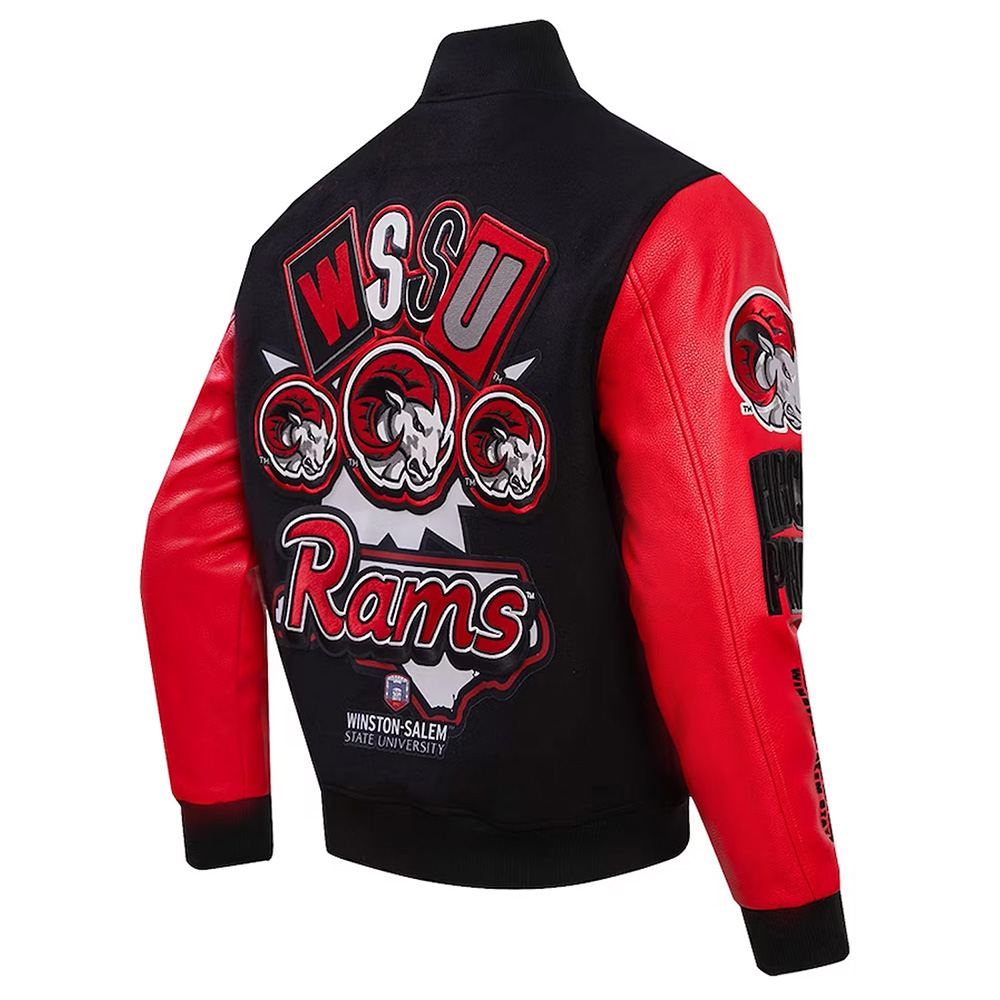 Winston-Salem State Rams Homecoming Wool/Leather Black and Red Varsity Jacket