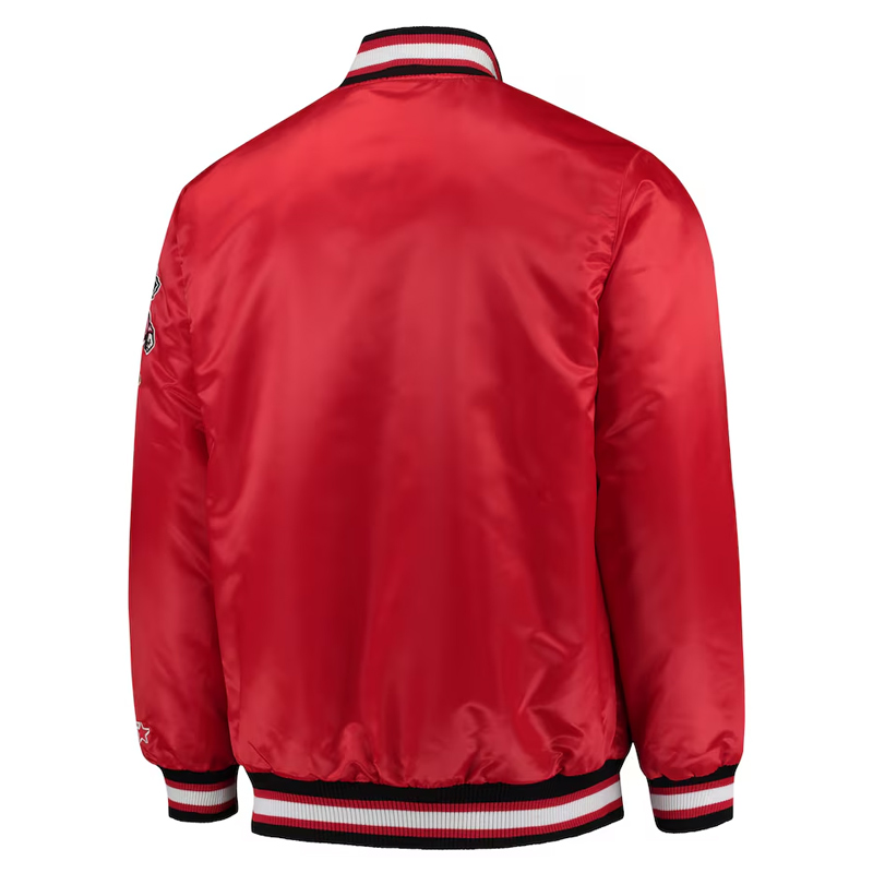 The classic red color way functions as a Wisconsin Badgers perfect representation for both team spirit celebration and everyday sport. The ribbed collar, cuffs and hemline along with a secure snap-tab closure make this Wisconsin Badgers O-Line red satin Jacket both comfortable and structured plus give it a varsity-style design.
