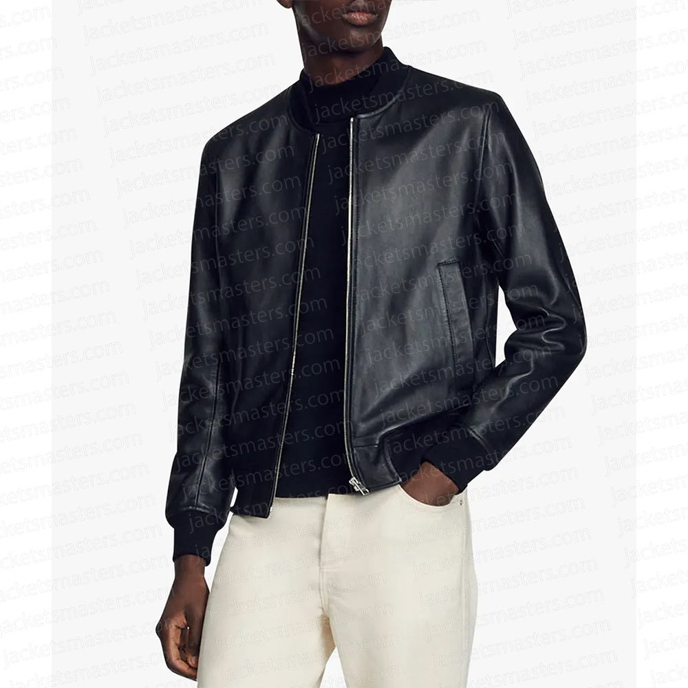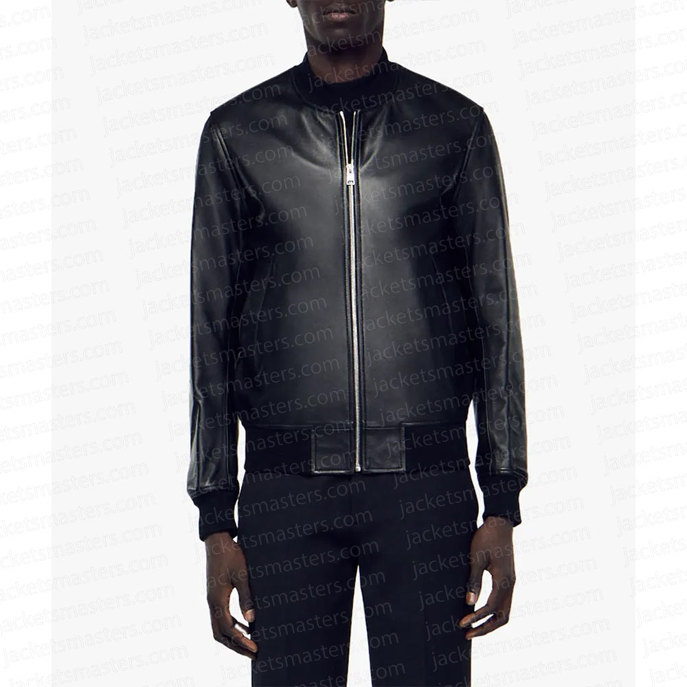 With Love Santiago Zayas Black Leather Bomber Jacket