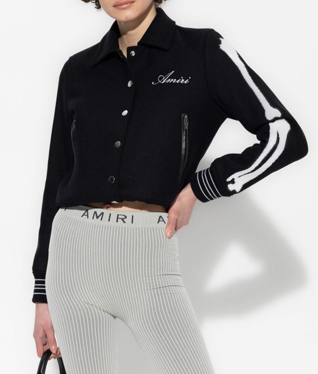 Discover the Women’s Black Amiri jacket, a gender-neutral wardrobe staple that expertly blends comfort and style. This jacket, which is made of fine wool and is colored in a timeless black, radiates traditional style. Easy wear is guaranteed by the full-snap front closure, and the shirt-style collar lends a touch of sophisticated refinement to the overall look. The garment is fitted snugly and has a delicate texture thanks to the rib-knitted hemline and cuffs. This jacket’s long, fitting sleeves give the traditional style a modern touch, making it a practical and stylish option. The Women’s Amiri Black Wool jacket adorned with the team logo on the chest and back, is more than simply an outer garment; it’s a declaration of your steadfast love for your team. The plush and silky interior lining will transport you to a world of luxury and make every wear of this jacket a sensual pleasure. The Women’s Black Amiri jacket, expertly constructed with superior stitching, is a tribute to timeless style and toughness.