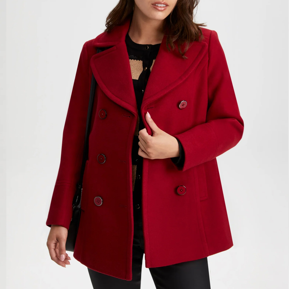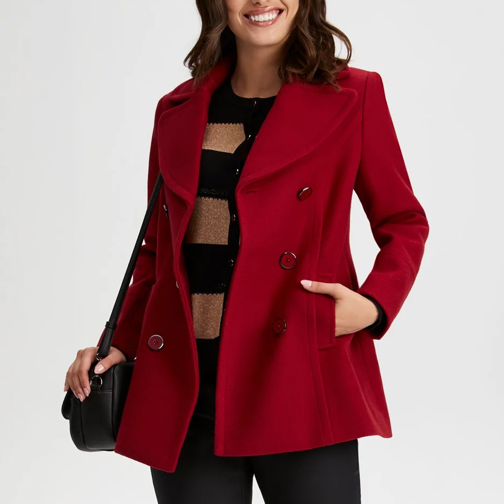 The blazer comes with a collar that has a lapel style giving it a professional but elegant look. The double-breasted button closure also provides a more sophisticated look and guarantees wearer’s comfort. Slim fit, long sleeves of Women’s Wool Button-front Blazer with open hem cuffs are equally as elegant and provide a clean finish to the blazer.