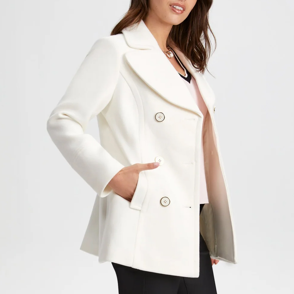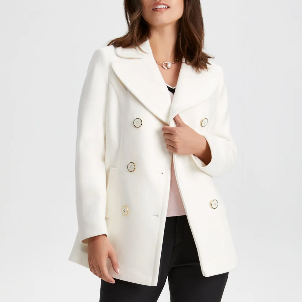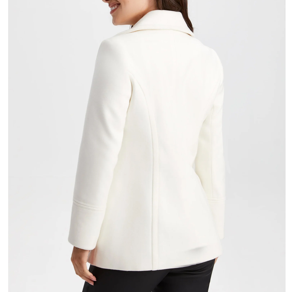 The Women’s Button-front Wool Blazer is a piece that is designed to give you the clean and classy look of a sophisticated woman. Made from quality wool material, this blazer has a smart cut and is suitable for office wear, special occasions or smart casuals. The white color remains rich and elegant, which allows you to wear this piece of clothing in any given day.