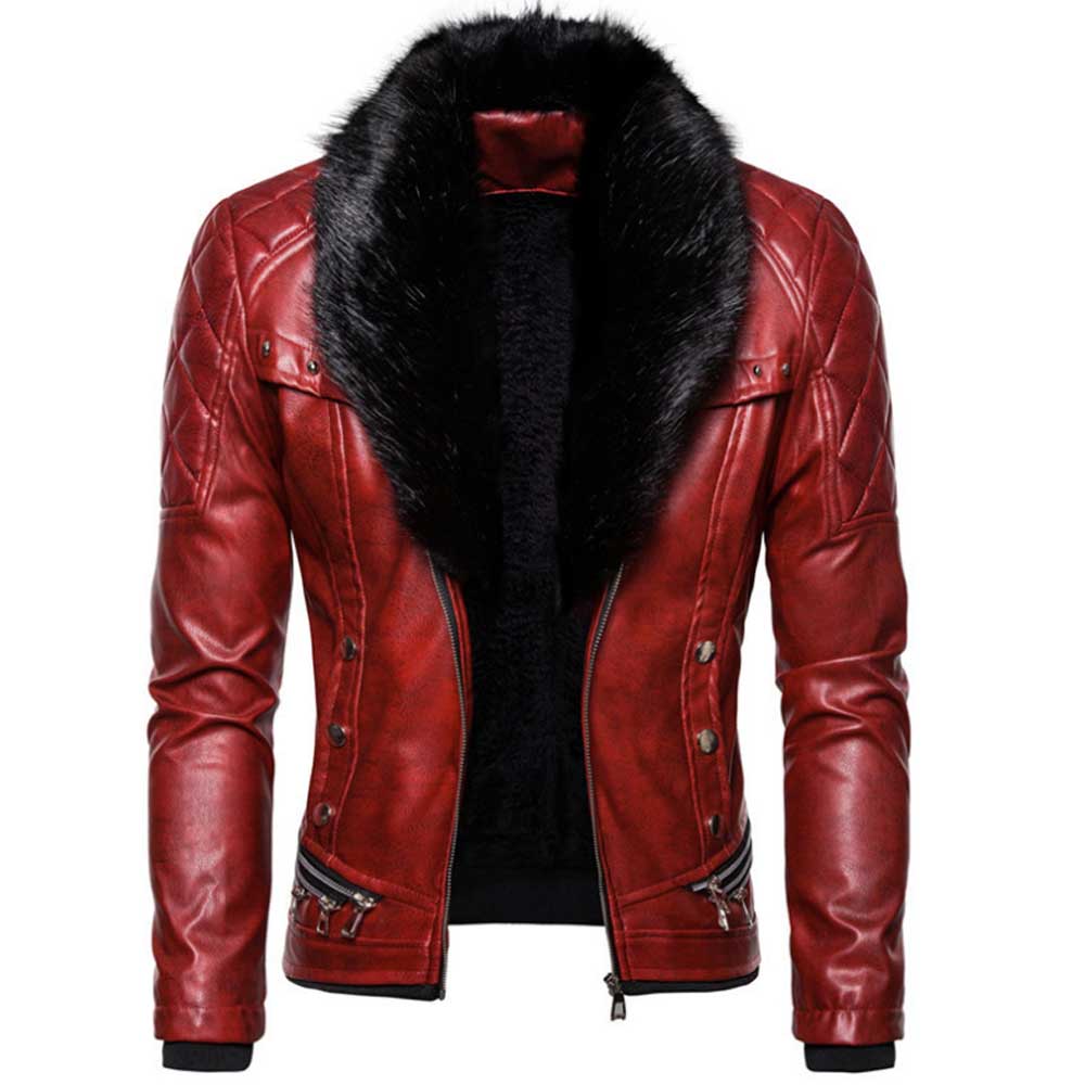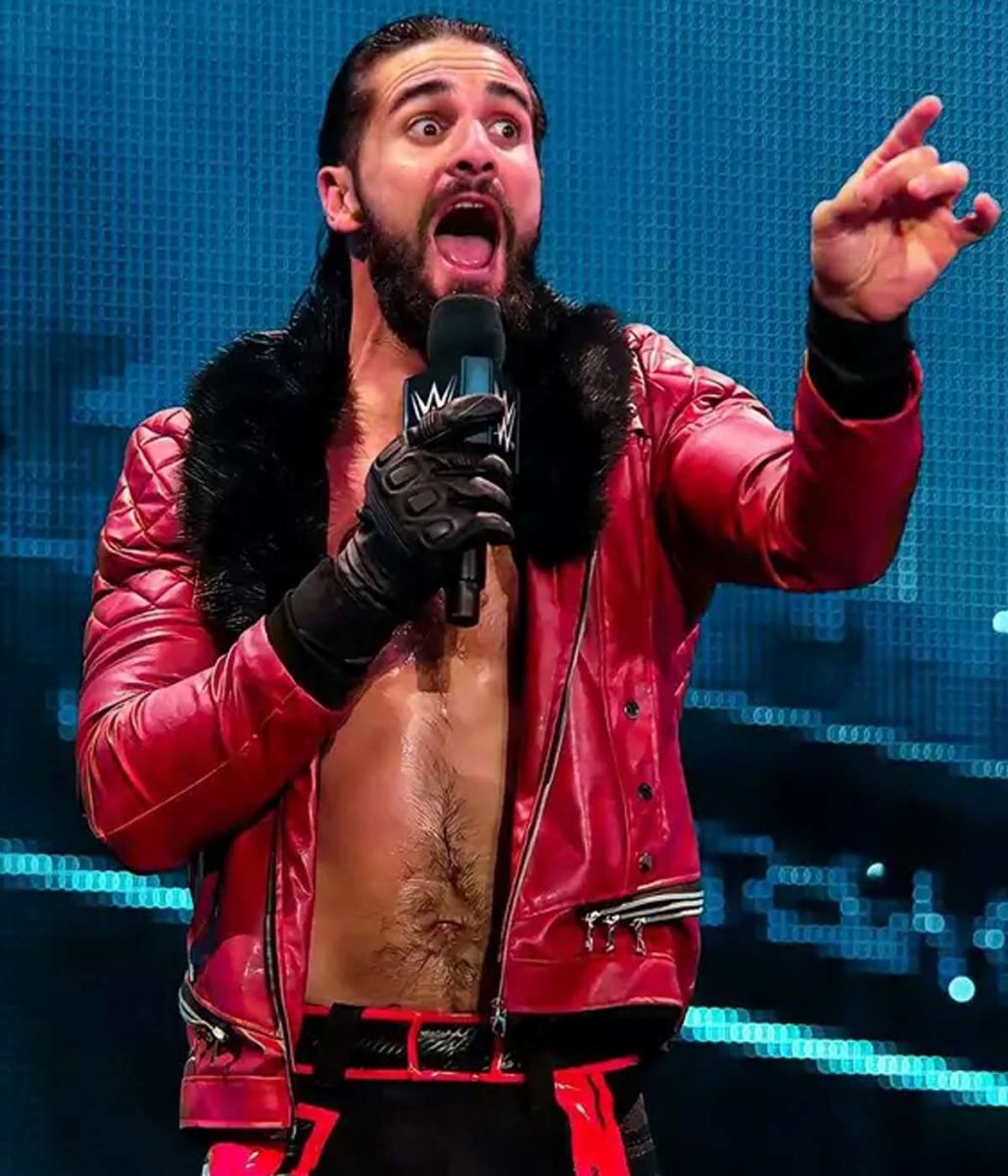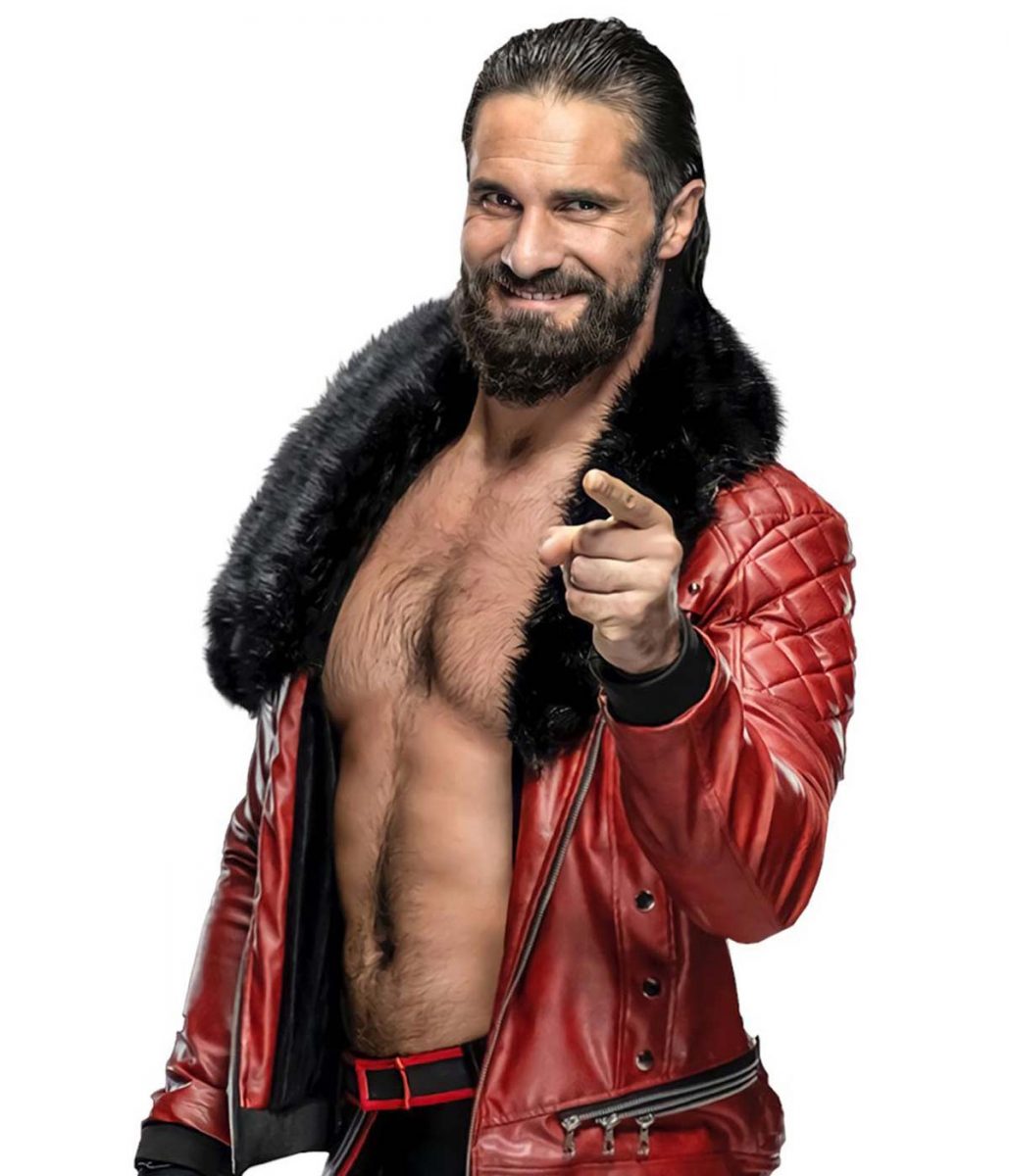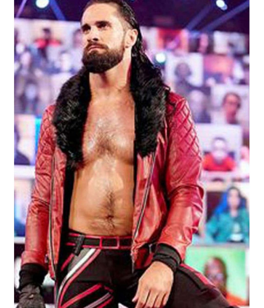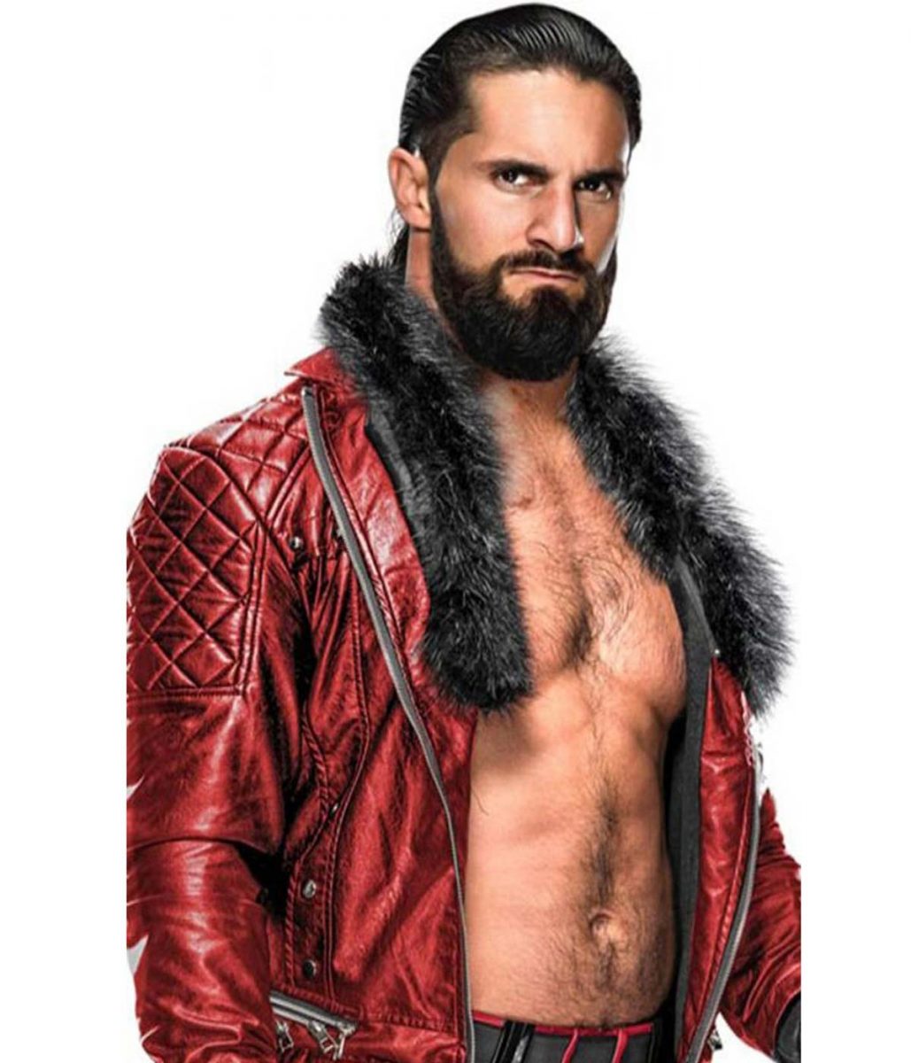 WWE Seth Rollins Fur Shawl Collar Red Leather Jacket