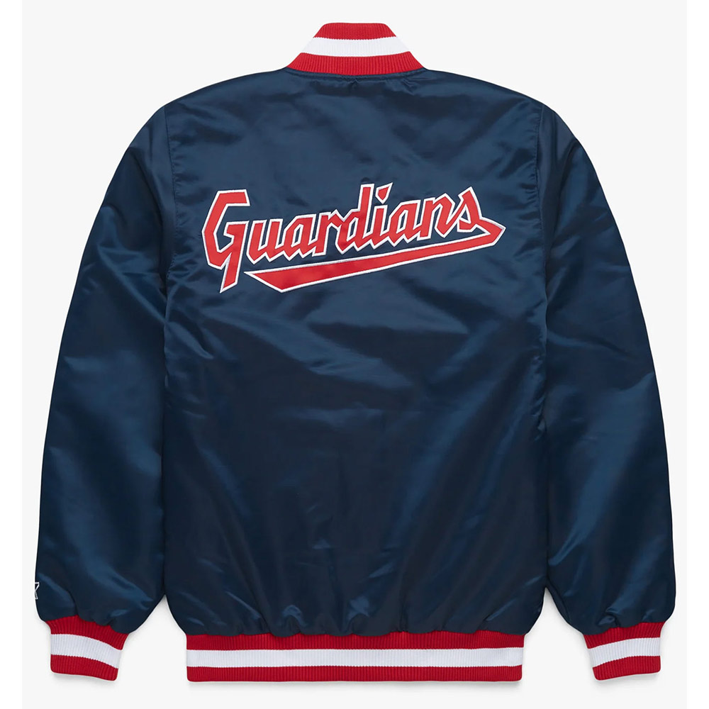 X Starter Cleveland Guardians Blue Satin Bomber Full-Snap Jacket